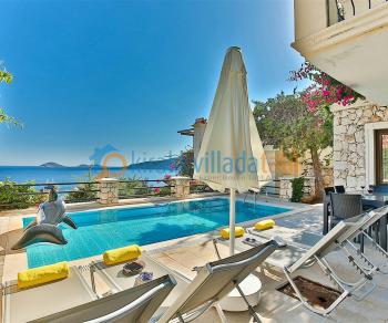 Kalkan Kalamar Mevkiinde 3 Yatak Odalı Deniz Manzaralı Tatil Villası