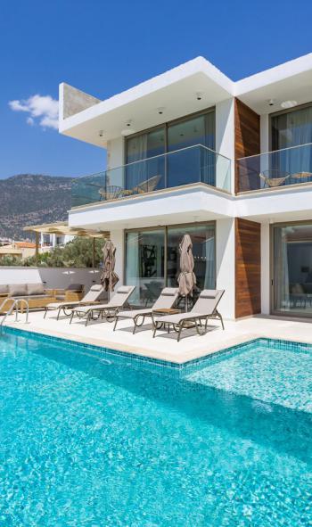 Geniş havuz ve havuz terası sayesinde konforlu bir tatil imkanı sunan villamız güzel bir tatil için sizleri beklemektedir. Kalkan şehir merkezine restoran ve zincir marketlere yakın konumda olan villamız Kalamar koyu plajına da yürüme mesafesinde dir Kalkanın coğrafi yapısı olarak villamızdan denize ulaşan yol dik bir rampadır.