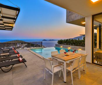 Bu ilan ait Detaylı açıklama ve bilinmesi gereken detaylarKalkan'ın büyüleyici manzarasını ayaklarınızın altına seren lüks villamız, 3 yatak odası ve 6 kişi konaklama kapasitesine sahiptir. Villamız özel yüzme havuzu ile donatılmış olup spor salonu ve oyun odası da bulunmaktadır. Her ayrıntısı özenle tasarlanmış olan denize yakın villamızda kullanılan modern ve kaliteli eşyalar ile kusursuz bir tatil deneyimi sunmaktayız. Havuz içerisinde merdiveni olan geniş havuz terası içinde konforlu bir tatil geçirebilirsiniz. Oyun odamızda langırt, masa tenisi gibi aktivitelerle zamanınızı eğlenceli geçirebilirsiniz.