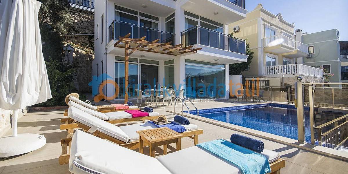 Oldukça lüks ve zevkli bir biçimde dizayn edilen villamızın her yerinden Muhteşem Şehir ve Kalkan Koyu manzarası mevcuttur. Toplamda 3 adet çift kişilik ebeveyn yatak odası ve 1 adet çatı katında genç yatak odası bulunmaktadır. Ana ebeveyn yatak odasında jakuzi ve TV bulunmaktadır. Wireless İnternet bağantısı, Kamera sistemi, alarm sistemi ve yangın dedektörleri ile sizlere güvenli bir tatil sunan villamızda, 1 araçlık kapalı otopark da bulunmaktadır. Toplam 26 basamak çıkışlı olduğundan engelli ve yaşlı konuklarımıza uygun değildir.