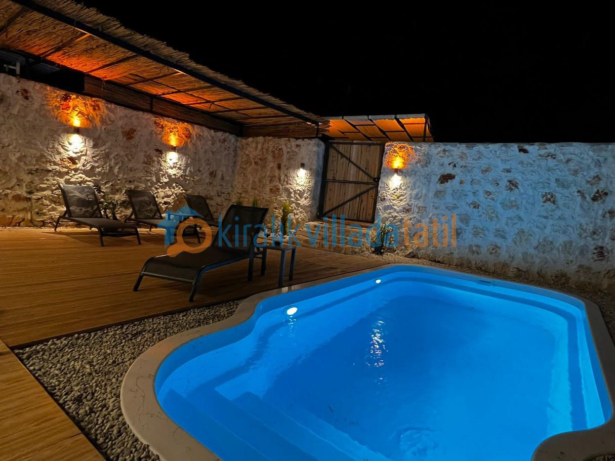 Ayrıca Kalkan’ın restoranlarına, kafelerine ve alışveriş olanaklarına kolayca ulaşabileceğiniz bir mesafede yer alır. Öne Çıkan Özellikler Korunaklı ve mahremiyet sağlayan havuz terası Şık ve modern bir dekorasyona sahip iç mekanlar Plaja yakın mesafe Verandada yer alan jakuzi Sessiz ve doğayla iç içe bir konum , tatil boyunca rahatlamak, huzur bulmak ve sevdiklerinizle unutulmaz anılar biriktirmek için ideal bir seçenektir. Hem konumu hem de sunduğu olanaklarla dolu dolu bir tatil geçirmeniz için sizleri bekliyor.