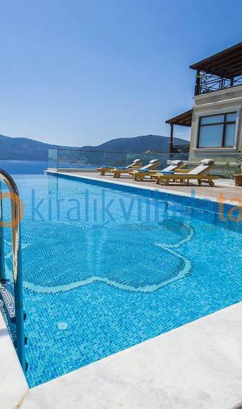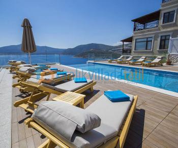 Kalkan’ın en prestijli ve sakin bölgelerinden Kışla mevkiinde yer alan bu özel tasarım lüks villa, altı süit yatak odasıyla 12 kişilik konaklama kapasitesi sunar. Oyun odasındaki L koltuk takımının açılarak yatak haline getirilebilmesi sayesinde kapasite 14 kişiye kadar çıkarılabilir. Villanın tüm odaları banyolu, klimalı ve modern bir tarzda dekore edilmiştir. İç mekânda tam donanımlı mutfak, geniş salon, iki adet jakuzili ebeveyn süiti, PlayStation oyun konsolu ve yüksek hızlı internet yer almaktadır.