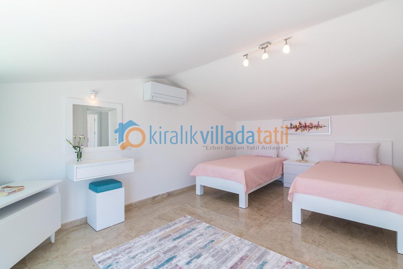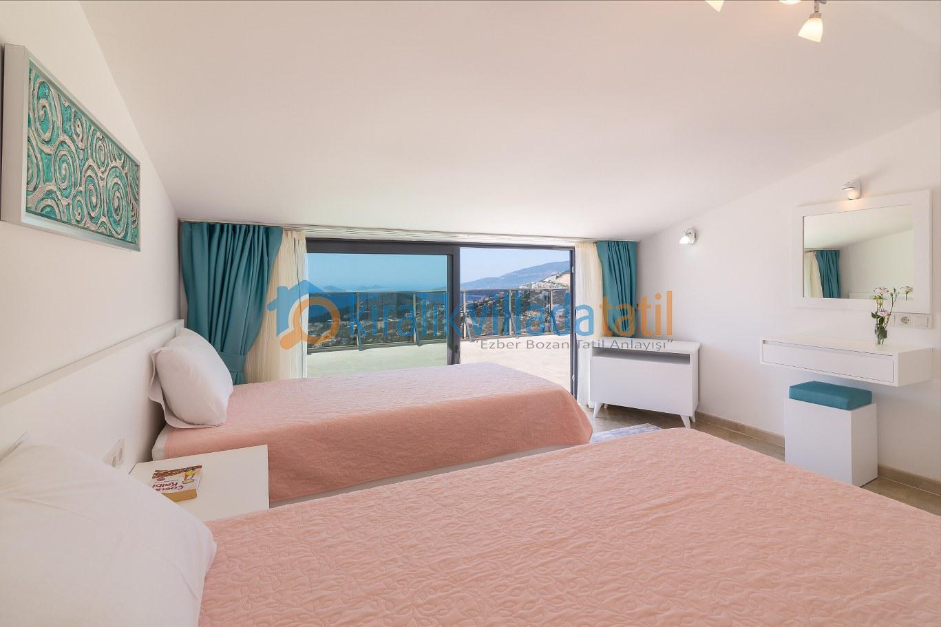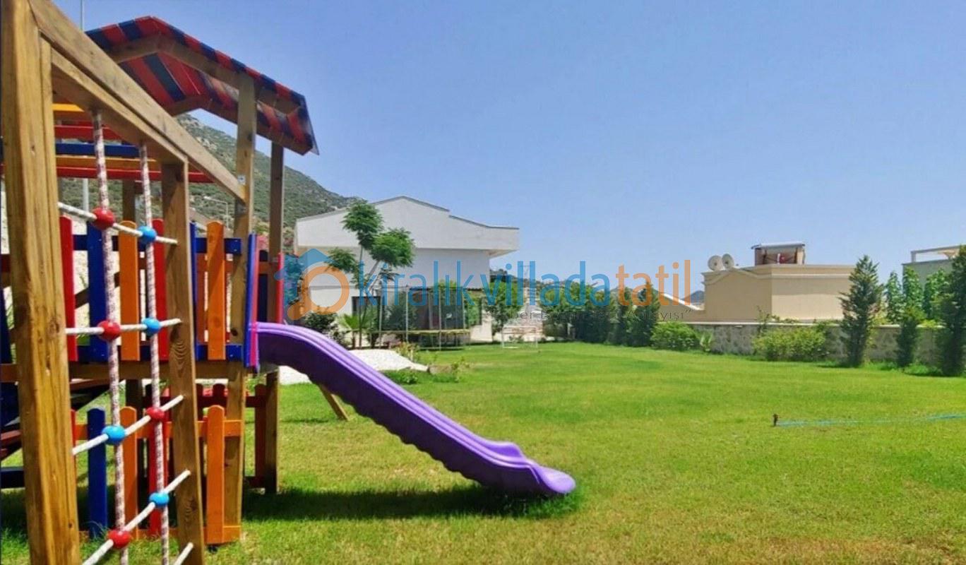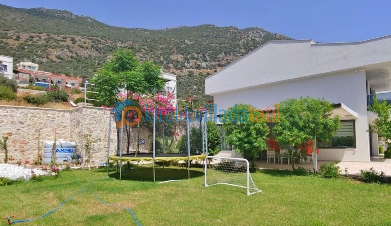 Bu ilan ait Detaylı açıklama ve bilinmesi gereken detaylarKalkan Kızıltaş mevkiinde bulunan bu tatil villası 5 yatak odası ile 10 kişilik kapasiteye sahiptir. Şehir merkezine yakınlığı ile ön plana çıkan villamızda 3 adet çift kişilik yatak, 4 adette tek kişilik yatak bulunmaktadır. Giriş katında açık plan geniş bir mutfak, oturma odası, ortak WC, 1 adet çift kişilik yatak odası ve havuz terasına çıkış bulunmaktadır. 2.katta ise 2 adet çift kişilik banyolu ebeveyn yatak odası, çatı katında ise 2 adet tek kişilik yatakların bulunduğu genç yatak odaları bulunmaktadır. Çatı katındaki banyo wc ortak kullanımdır.Villamızın terasında çocuklarınızda eğlenebileceği oyun alanı mevcuttur Villamzın muteşem deniz manzarası vardır .