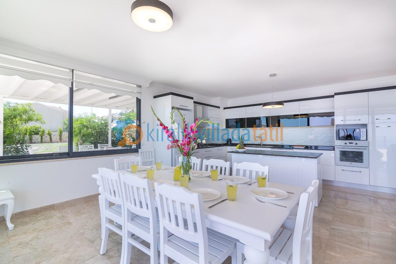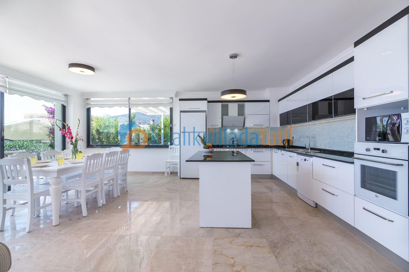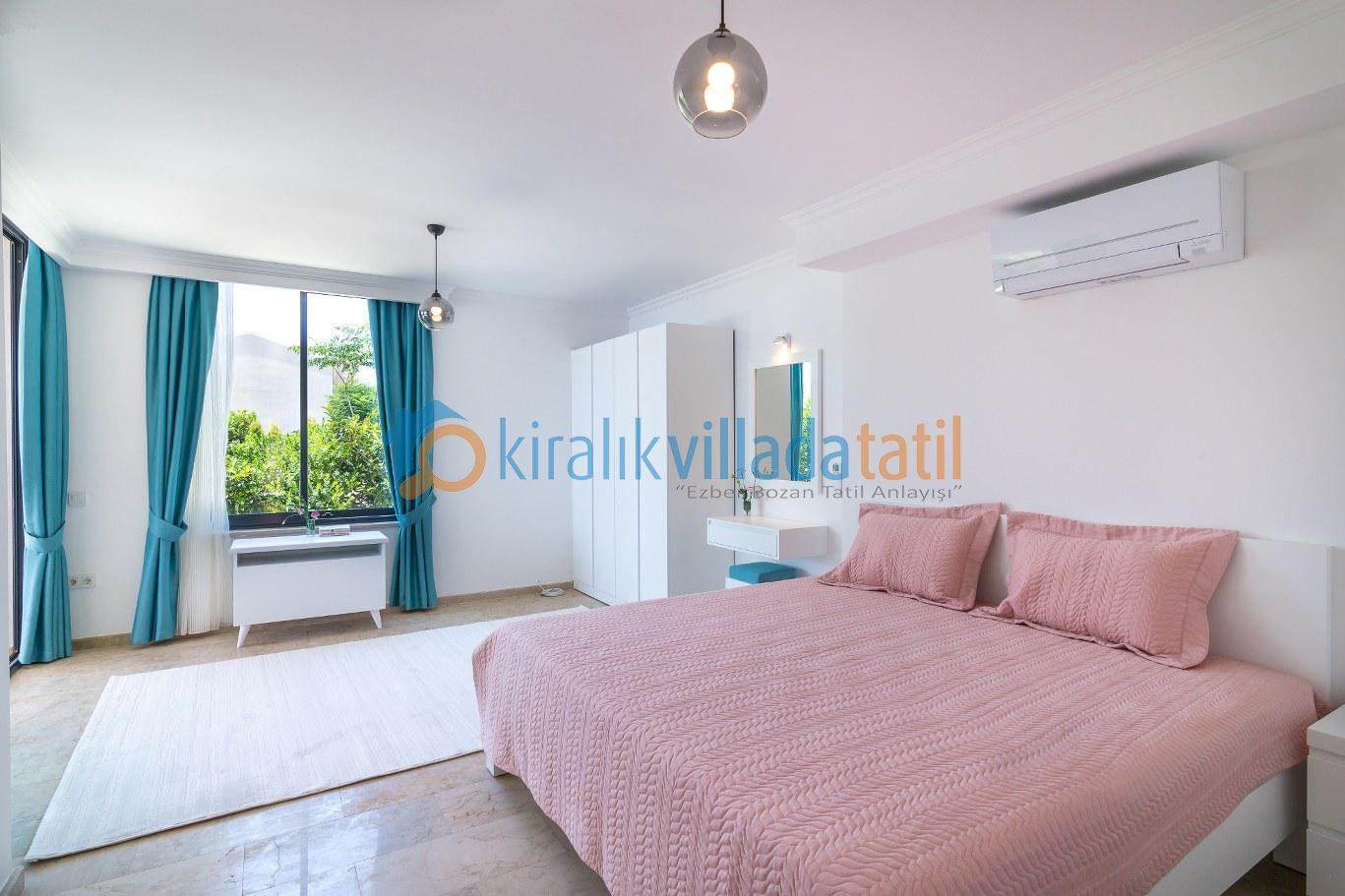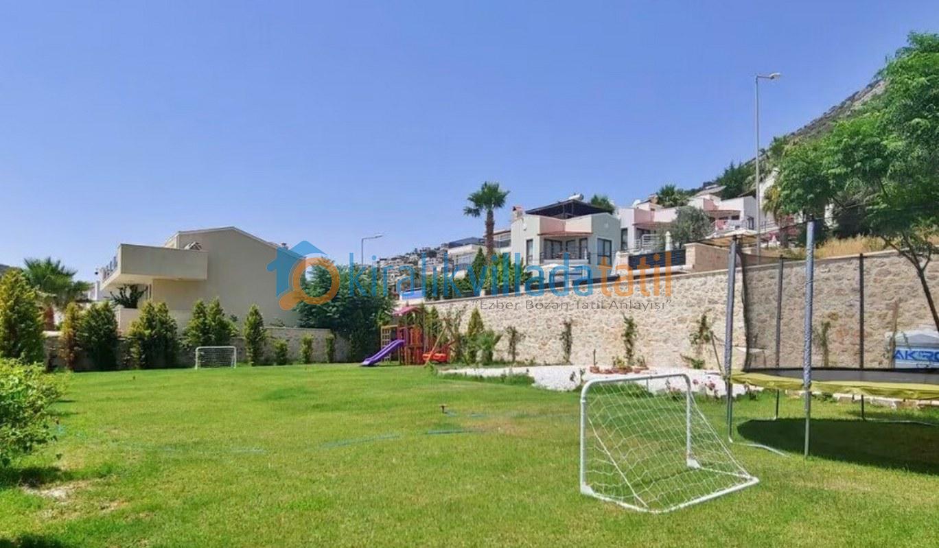 Bu ilan ait Detaylı açıklama ve bilinmesi gereken detaylarKalkan Kızıltaş mevkiinde bulunan bu tatil villası 5 yatak odası ile 10 kişilik kapasiteye sahiptir. Şehir merkezine yakınlığı ile ön plana çıkan villamızda 3 adet çift kişilik yatak, 4 adette tek kişilik yatak bulunmaktadır. Giriş katında açık plan geniş bir mutfak, oturma odası, ortak WC, 1 adet çift kişilik yatak odası ve havuz terasına çıkış bulunmaktadır. 2.katta ise 2 adet çift kişilik banyolu ebeveyn yatak odası, çatı katında ise 2 adet tek kişilik yatakların bulunduğu genç yatak odaları bulunmaktadır. Çatı katındaki banyo wc ortak kullanımdır.Villamızın terasında çocuklarınızda eğlenebileceği oyun alanı mevcuttur Villamzın muteşem deniz manzarası vardır .