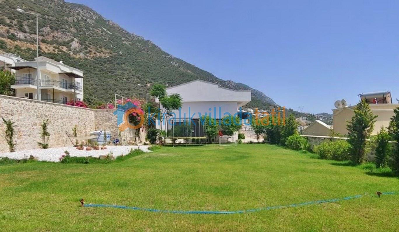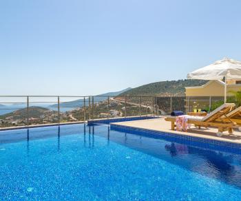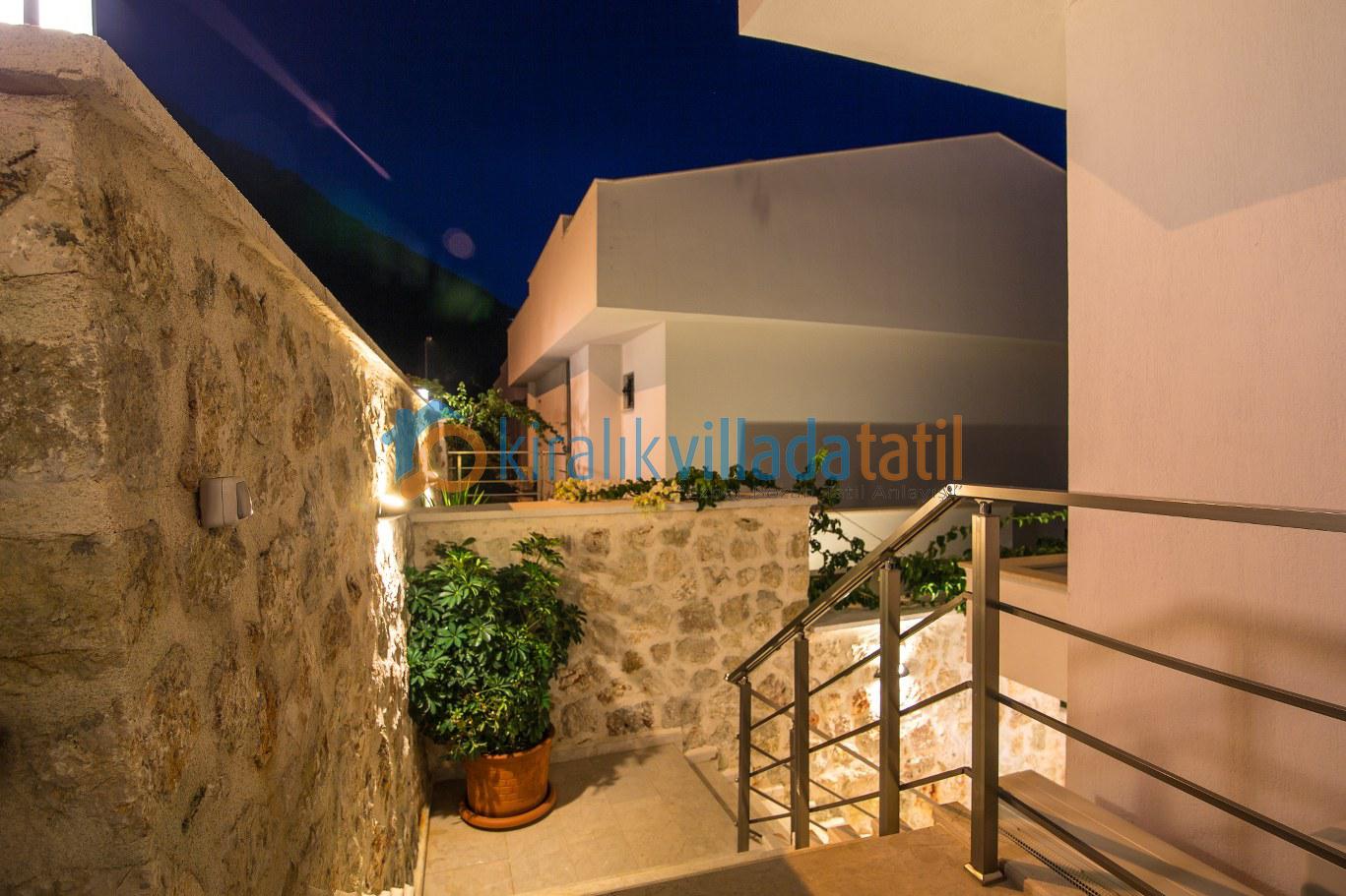 Geniş alanları ve havuz terası ile ferah bir ortamda tatil yapacağınız villamız, Kalkan şehir merkezine yaklaşık 1,5 km mesafede bulunmaktadır. Yüksek konumu ile muhteşem bir manzaraya sahip olup, yokuşlardan dolayı araç mutlaka gereklidir. Havuz terasında bulunan çocuk havuzunda hidromasaj jakuzi keyfi yapabilir, geniş bahçesini de güneşlenme alanı olarak kullanabilirsiniz.