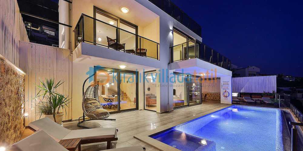 kalkan Koyuna hakim panoramik deniz manzarasıyla öne çıkan bu kiralık villa modern tasarımı ve konforu merkeze alan detaylarıyla seçkin bir tatil atmosferi yaratır. villa kiralama sürecinde mahremiyeti öncelik kabul eden misafirler için havuz terası tamamen dışarıdan görünmeyecek şekilde görünülrüğü engellenmiş olup muhafazakar aillelerimiz içinde uygun seçenkete olan villalarımızdan biridir bu sayede villamız tam anlamıyla korunaklı villa ayrıcalığı sağlar.