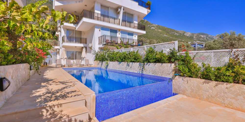 Kalkan Kızıltaş bölgesinde yer alan bu kiralık villa merkezi lokasyonu geniş havuzu ve konforlu yapısıyla denize yakın ve merkeze yakın villa arayan misafirler için güçlü bir villa kiralama alternatifidir.