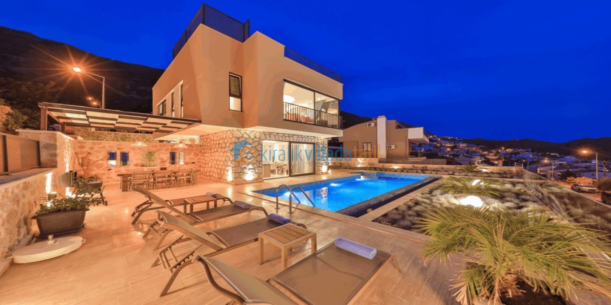 Bu ilan ait Detaylı açıklama ve bilinmesi gereken detaylarKalkan’ın Kızıltaş mevkiinde, panoramik deniz manzarasına sahip konumda yer alan bu lüks kiralık villa, 2 yatak odası ve 4 kişilik konaklama kapasitesiyle hem balayı çiftleri hem de küçük aileler için konforlu bir villa kiralama deneyimi sunar. Merkezi konuma yakınlığı sayesinde Kalkan’ın sosyal alanlarına kısa sürede ulaşılabilirken, manzara ve sakinlik bir arada yaşanır. Korunaklı veya muhafazakâr konseptte olmayan bu villa, manzara ve modern konforu önceliklendiren misafirler için tasarlanmıştır.
