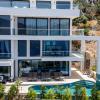 Yaklaşık 40 m² büyüklüğündeki oval tasarımlı özel yüzme havuzu, deniz manzarasına karşı konumlandırılmıştır. Geniş havuz alanı, kalabalık grupların rahatça vakit geçirebilmesine olanak tanır. Havuz terası, gün boyunca manzaranın keyfini çıkarmak için ideal bir yaşam alanı sunar.