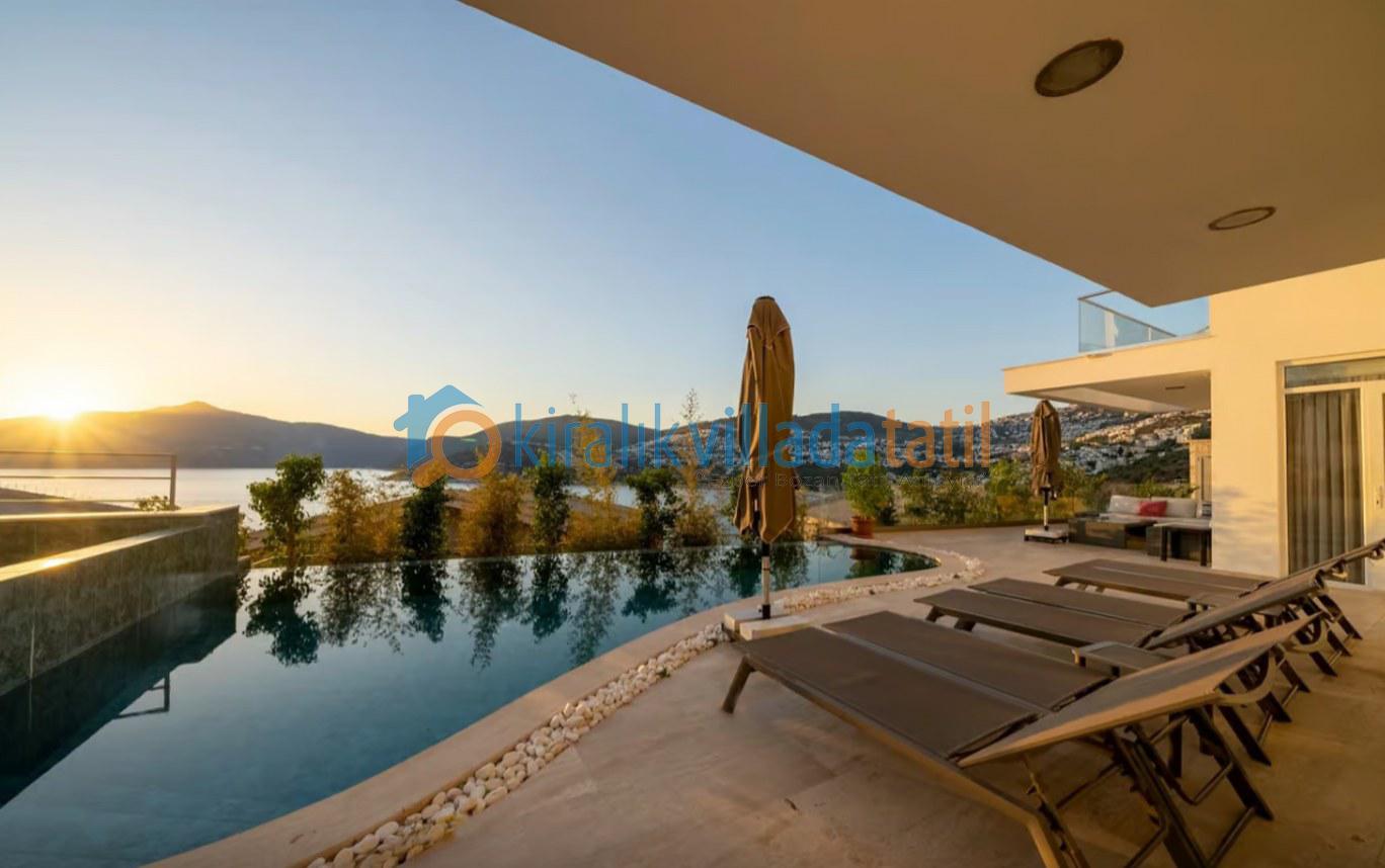 Villanın bulunduğu yüksek konum, Kalkan manzarasını kesintisiz şekilde izleme imkânı sağlar. Gün boyu denizin maviliğine hâkim olan bu manzara, villanın en güçlü özelliklerinden biridir. Merkeze yakın olmasına rağmen sakin bir atmosfer sunması, konfor ve ulaşım avantajını bir arada isteyen misafirler için önemli bir artıdır.