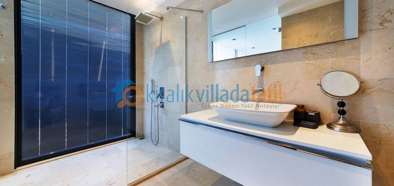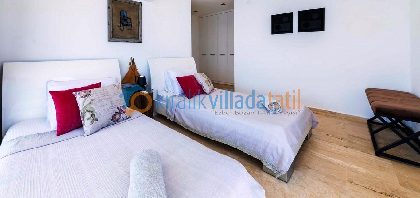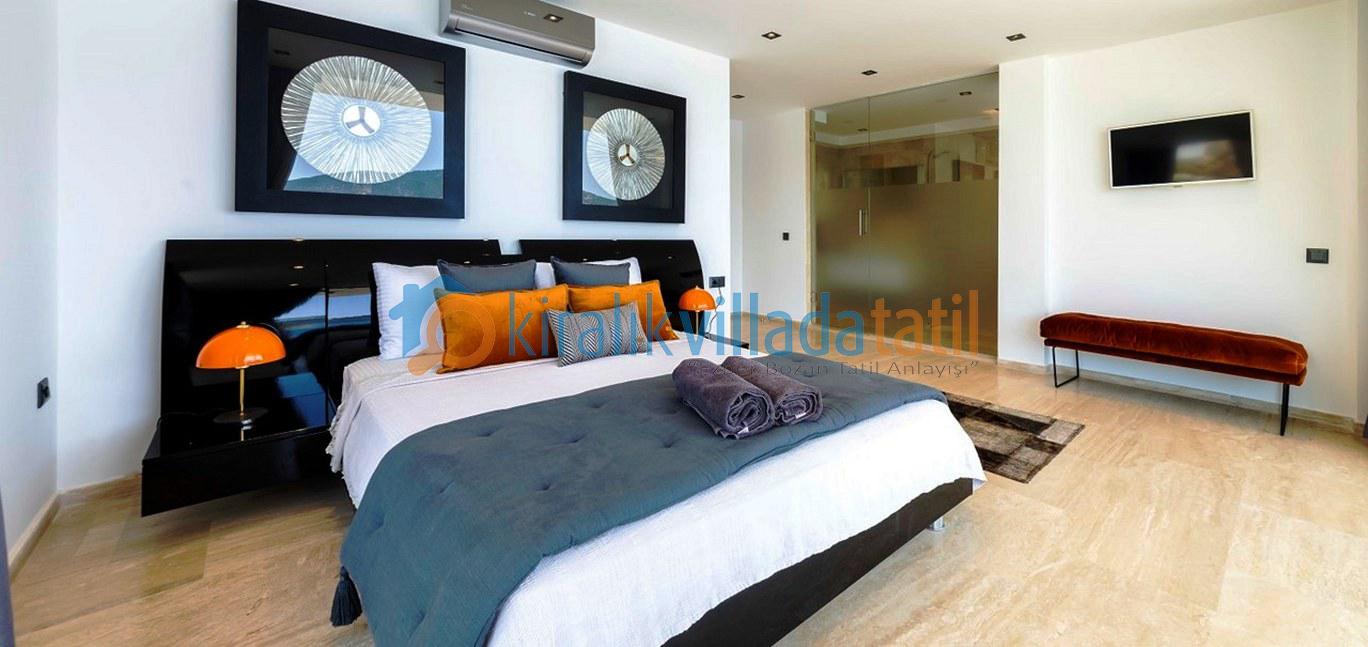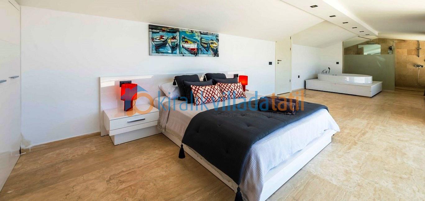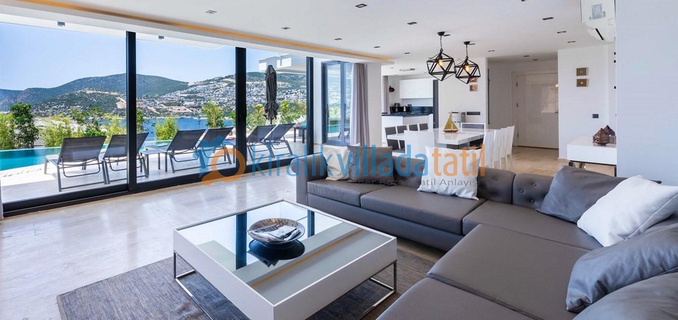 Zemin katta deniz manzarasına açılan geniş bir salon ve Amerikan mutfak yer almaktadır. Üst katlarda konumlanan yatak odalarının tamamı özel banyoludur. Beş yatak odasında çift kişilik yatak, bir yatak odasında ise iki adet tek kişilik yatak bulunmaktadır. Teras katında yer alan ana yatak odasında büyük boy jakuzi bulunur ve bu alan manzara eşliğinde keyifli bir kullanım sunar.