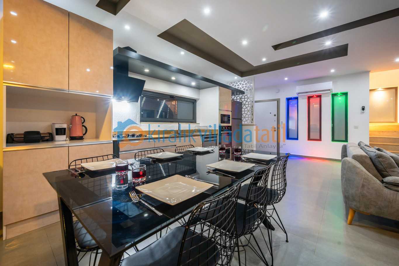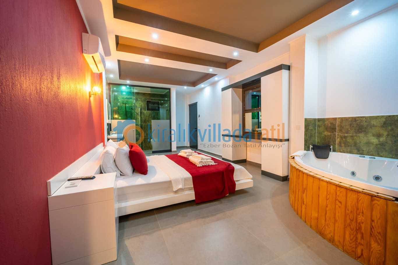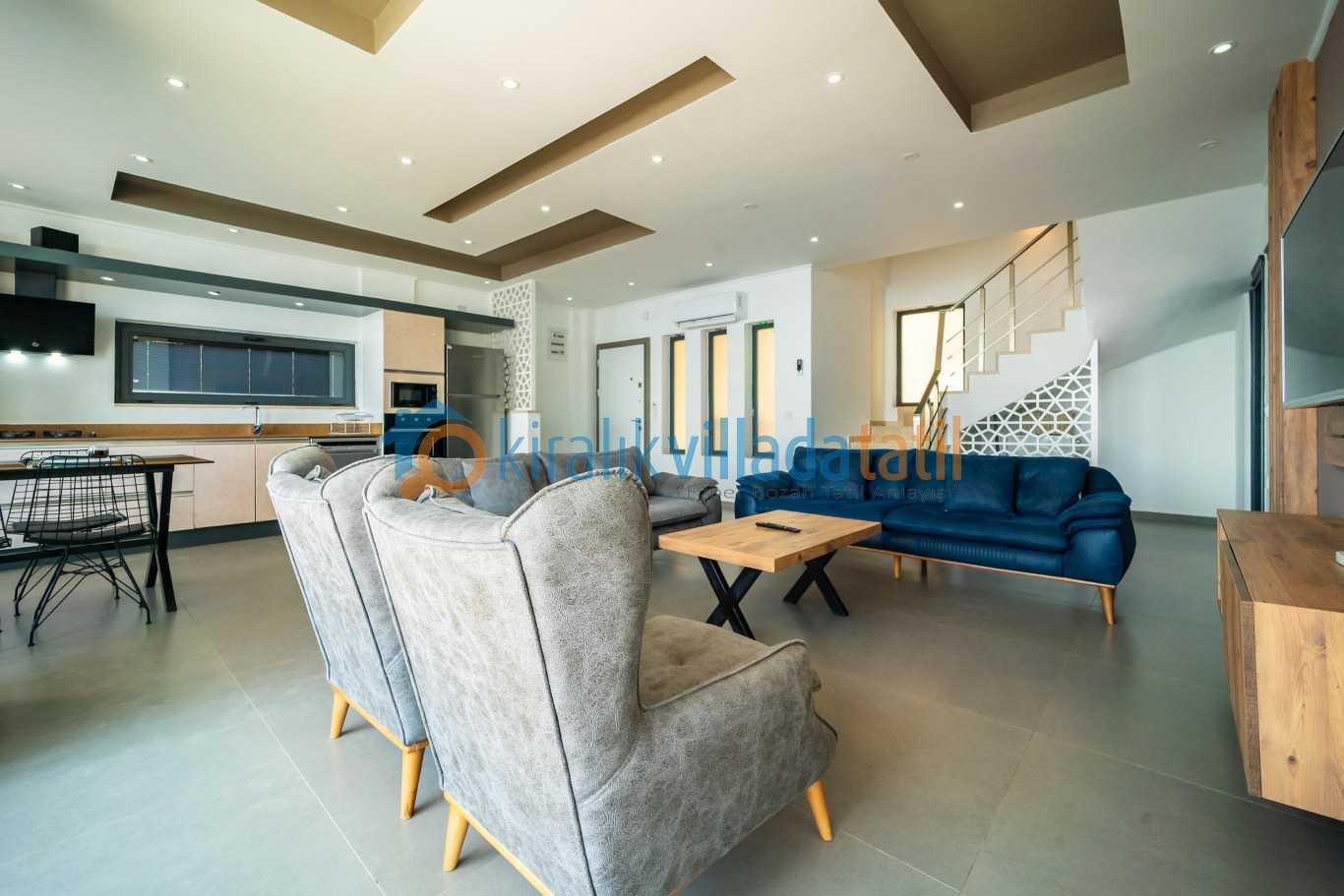İç mekan tasarımında konfor ön planda tutulmuştur villa içerisinde tatil boyunca ihtiyaç duyulabilecek tüm temel ev ekipmanları eksiksiz şekilde yer almaktadır modern mobilyalar ferah yaşam alanları ve dengeli yerleşim planı sayesinde konaklama süresince ev rahatlığı hissedilir. villada yer alan jakuzi tatile ekstra bir konfor ve dinlenme alanı kazandırır.