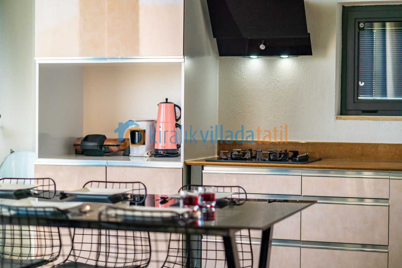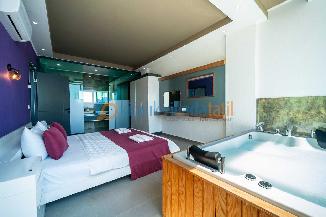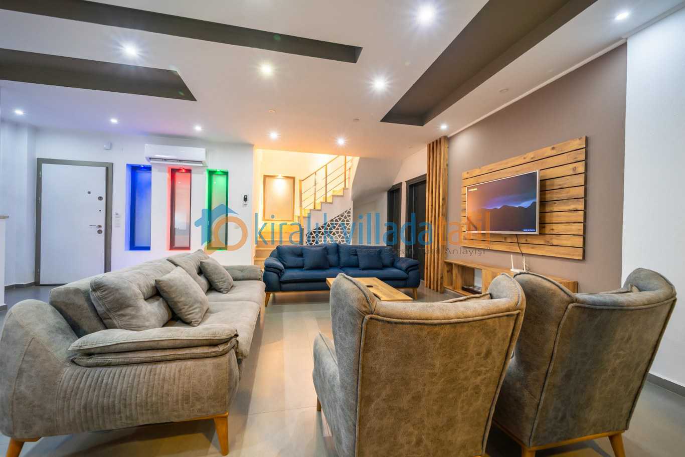 İç mekan tasarımında konfor ön planda tutulmuştur villa içerisinde tatil boyunca ihtiyaç duyulabilecek tüm temel ev ekipmanları eksiksiz şekilde yer almaktadır modern mobilyalar ferah yaşam alanları ve dengeli yerleşim planı sayesinde konaklama süresince ev rahatlığı hissedilir. villada yer alan jakuzi tatile ekstra bir konfor ve dinlenme alanı kazandırır.