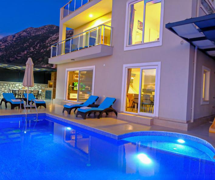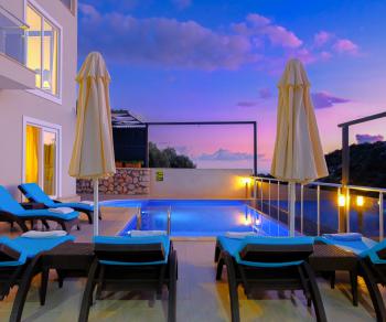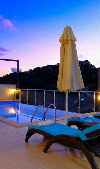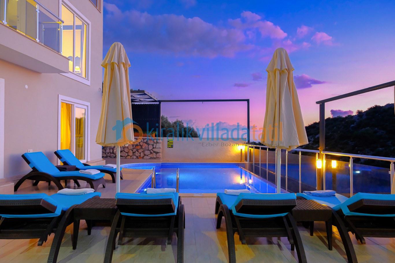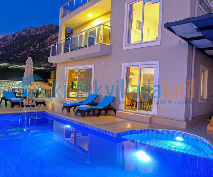 Modern iç dekorasyonu, konforlu oturma alanları ve manzaraya açılan geniş cam cepheleriyle villa, Akdeniz’in eşsiz mavisini yaşam alanınıza taşır. Hem eğlence hem de dinlenme odaklı tasarlanan bu villa, Kalkan’daki lüks tatil beklentisini üst seviyeye taşır.