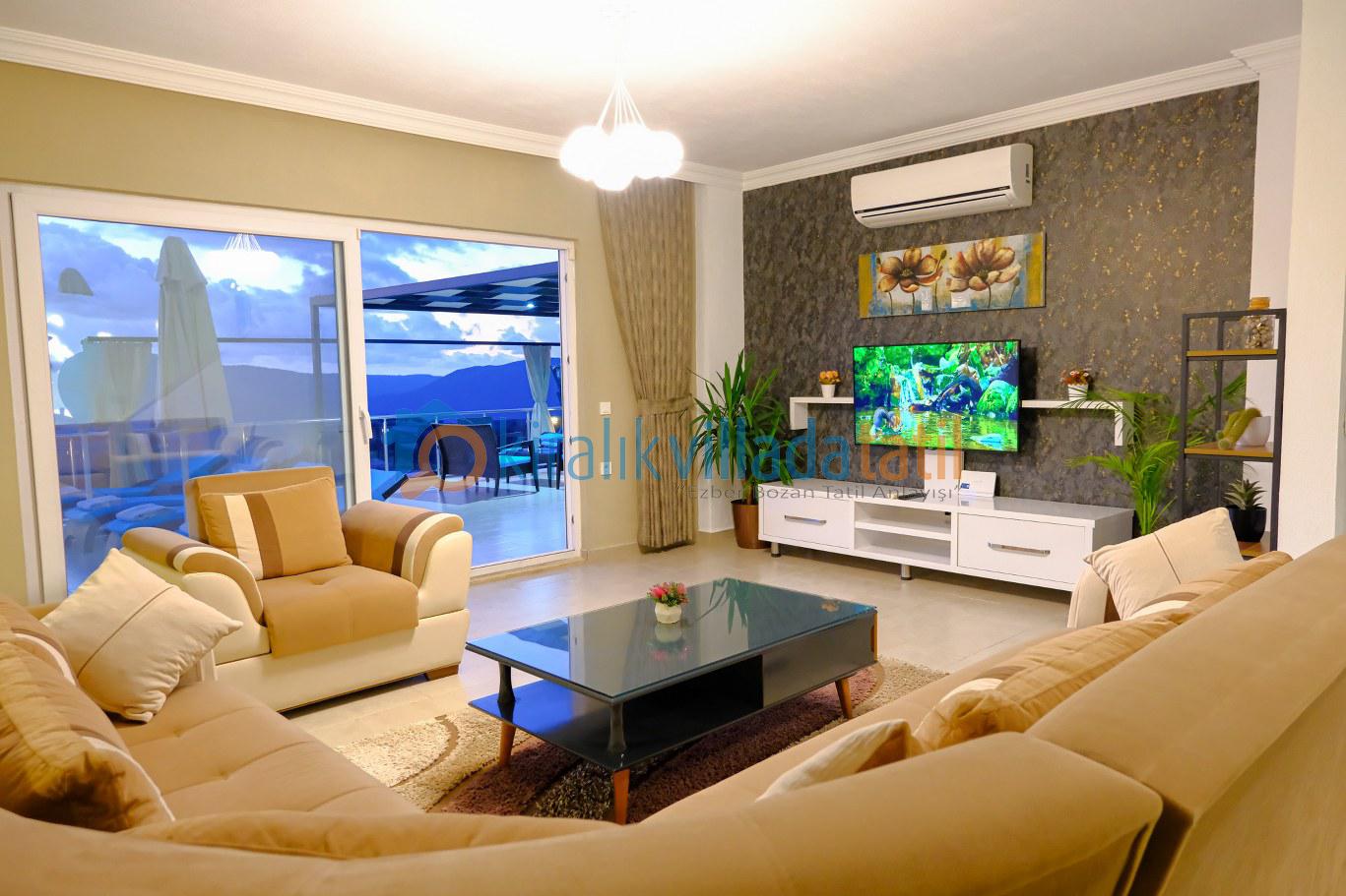 Kalkan Kördere Bölgesinde Deniz Manzarlı 8 Kişilik Villa