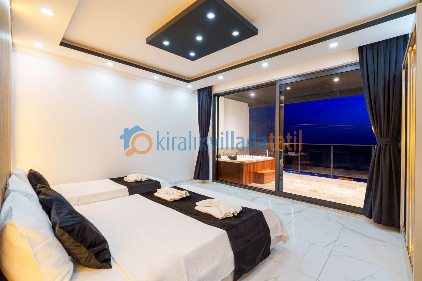 Bu ilan ait Detaylı açıklama ve bilinmesi gereken detaylarKalkan Kördere'de bulunan villamız, 3 yatak odası ile 7 kişilik kapasiteye sahiptir. Havuz ve havuz terasının korunaklı olması ile, muhafazakar aileler ve balayı çiftlerimiz için uygun bir villadır. Muhteşem bir deniz manzarasına sahip olan villamız, sizlere unutulmaz bir tatil sunacaktır. Lüks iç dizayna sahip olan villamızda, deniz manzaralı jakuzi ile tatilinize daha da keyif katabilirsiniz.