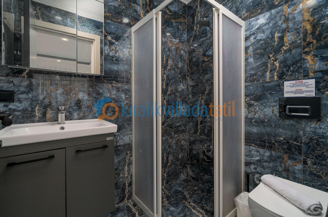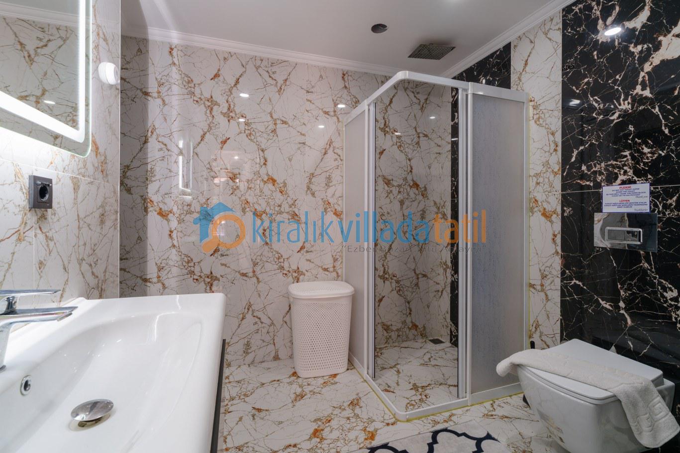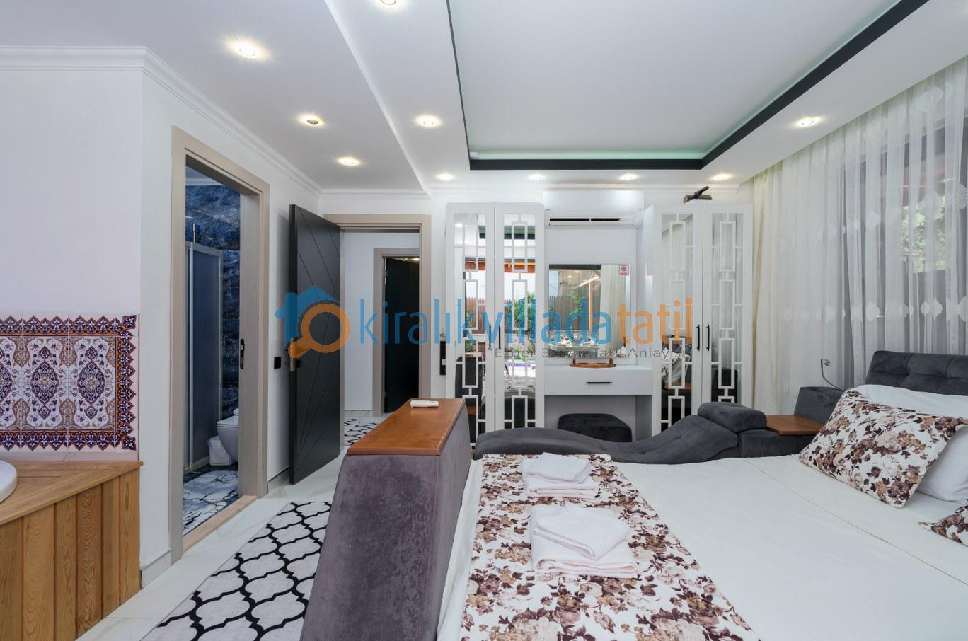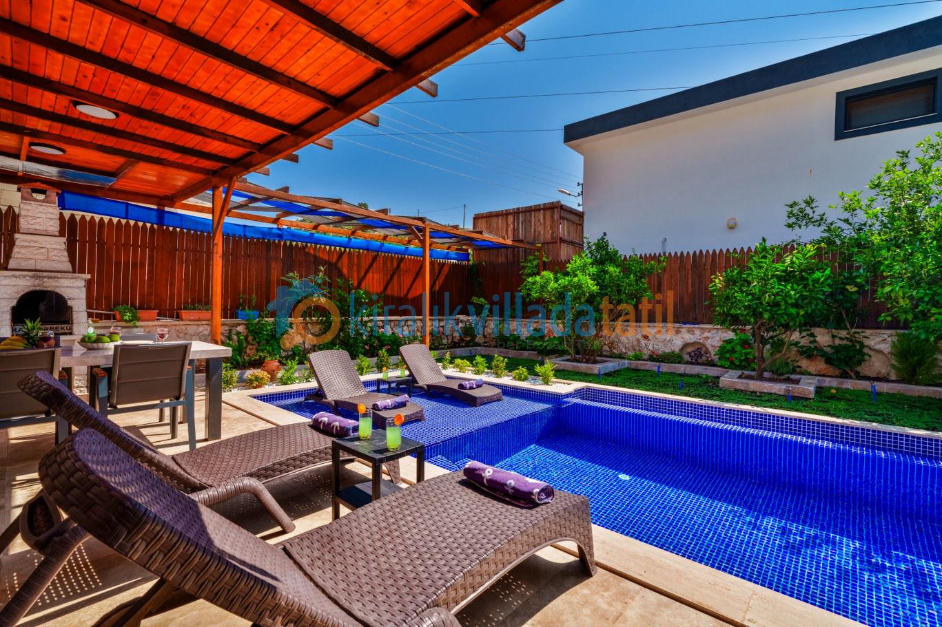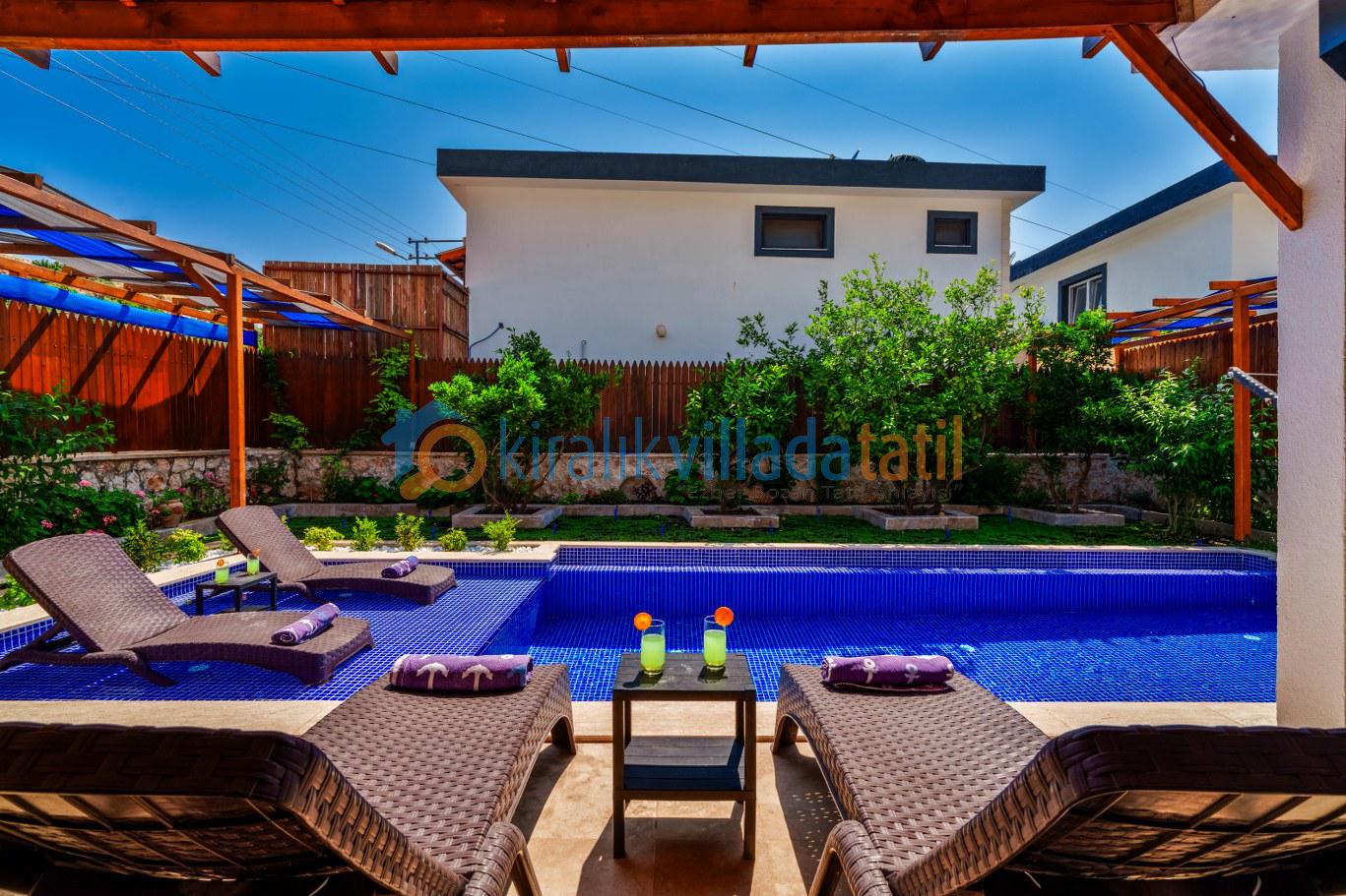 Villanın özel yüzme havuzu ve havuz terası korunaklı olarak planlanmış olup, dış gözlerden uzak yapısı sayesinde muhafazakar aileler ve balayı çiftleri için uygun bir konaklama seçeneği oluşturur. Geniş havuz terası, gün boyu rahatça vakit geçirebileceğiniz ferah bir kullanım alanı sunmaktadır.