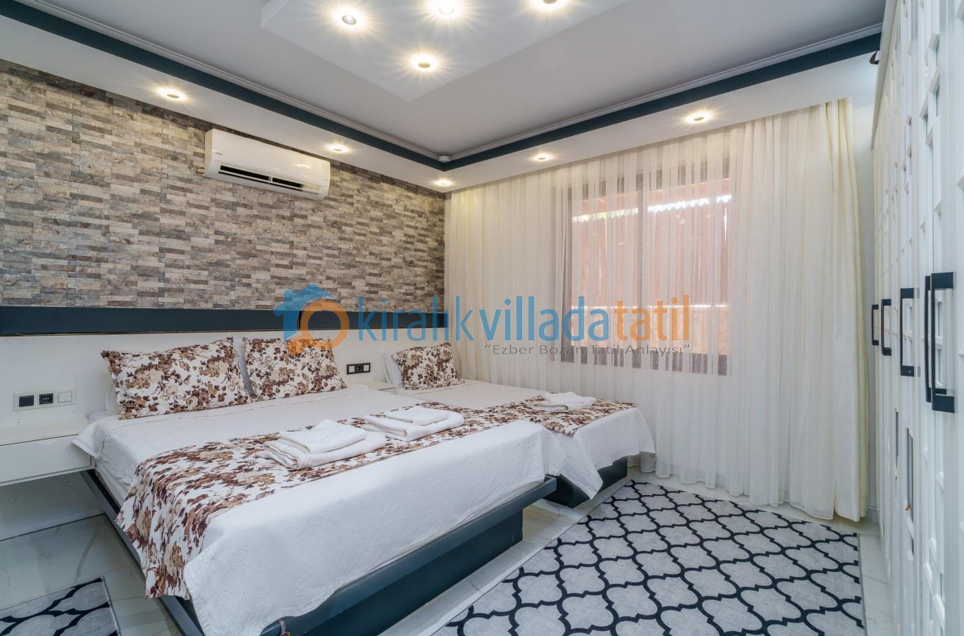 Birinci yatak odasında çift kişilik yatak, jakuzi, banyo, WC ve klima bulunmaktadır. İkinci yatak odasında ise bir adet çift kişilik yatak, bir adet tek kişilik yatak, banyo, WC ve klima yer almaktadır. Bu oda düzeni, hem aileler hem de arkadaş grupları için rahat bir kullanım imkânı sağlar.