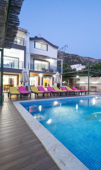 Kalkan Kördere Mevkiinde Deniz Manzaralı 14 Kişilik Tatil Villası