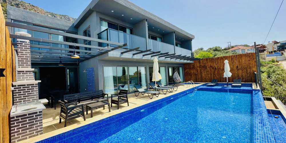 Kalkan’ın göz alıcı manzarasıyla öne çıkan Kördere bölgesinde yer alan bu villa; doğa, deniz manzarası ve konforu bir arada sunan yapısıyla deniz manzaralı villa seçenekleri arasında öne çıkan özel tatil alternatiflerinden biridir.