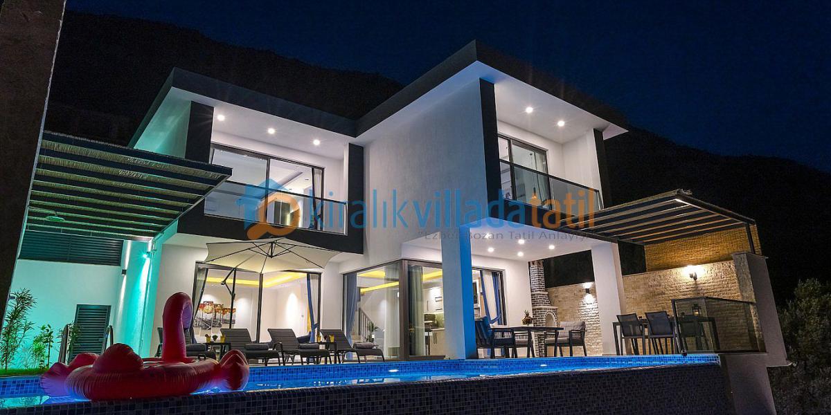 Tamamen yani olan villamız konforlu bir tatail geçirmeniz için tasarlanarak son derece modern ve lüks olarak dizayn edilmiştir. Geniş havzu ve havuz terası ile eğlenceli bir tatil geçirmenizi sağlayacaktır. Havuz etrafı duvarlar yükseltilerek muhafazakar hale getirilen villamız bu sayede dış göalerden uzak tatil yamak isteyen muhafazakar ailelerimiz içinde ideal bir seçenektir. Balayı tatili isteyen yeni çüftelrimizinde beğeneceği villamız sizlere unutamayacağınız bir balayı tatiliniz sunmaktadır.