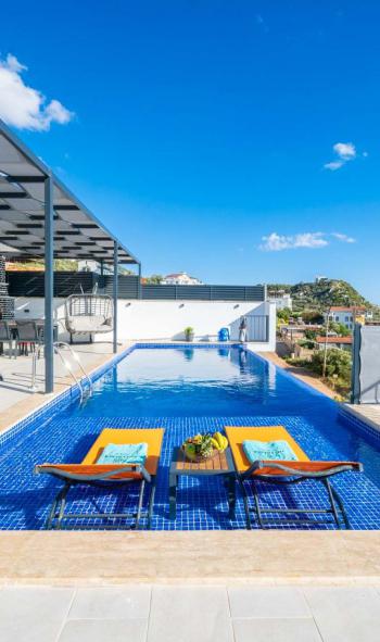 Villanın geniş terası, açık havada romantik bir akşam yemeği için idealdir ve nefes kesen manzarası ile unutulmaz bir deneyim sunar. İçeride, modern ve fonksiyonel bir mutfak, şık bir oturma odası ve rahat bir yatak odası ile donatılmış villamızda, ev konforunu aratmayacak bir tatil deneyimi yaşayacaksınız. Villanın her odasında panoramik deniz manzarası sizi bekliyor ve ücretsiz Wi-Fi, klima ve uydu TV gibi olanaklarla birlikte sunuluyor. Kalkan'ın sıcak yaz günlerinde özel yüzme havuzunun keyfini çıkarabilir ve villanın güzel bahçesinde şezlonglarda dinlenerek serinleyebilirsiniz. Villamız, evden uzakta konaklama ihtiyacınızı karşılamak için ideal bir seçenek olmanın yanı sıra, aynı zamanda rahatlık ve özel hissetmenizi sağlamak için tasarlanmıştır.