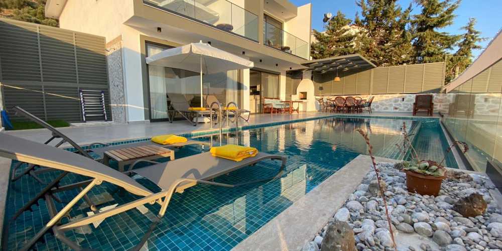 Villanın dış alanında özel yüzme havuzu ve geniş havuz terası bulunmaktadır. Havuz başında güneşlenebilir ve deniz manzarası eşliğinde keyifli vakit geçirebilirsiniz. Villada ayrıca sauna ve bilardo masası da bulunmakta olup tatilinizi daha eğlenceli ve keyifli hale getiren olanaklar sunmaktadır.