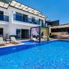 Villada tatil süresince ihtiyaç duyulabilecek tüm detaylar düşünülmüş, konforlu ve huzurlu bir villa kiralama deneyimi sunulması hedeflenmiştir. Ön cephede yer alan modern veranda alanı, mimari tasarımı tamamlayan şık bir dokunuş sunarken, geniş yüzme havuzu ile bütünleşerek keyifli bir yaşam alanı oluşturur. İç mekânda da dış alandaki modern çizgi devam eder; ferah, aydınlık ve fonksiyonel alanlar tatil konforunu üst seviyeye taşır.