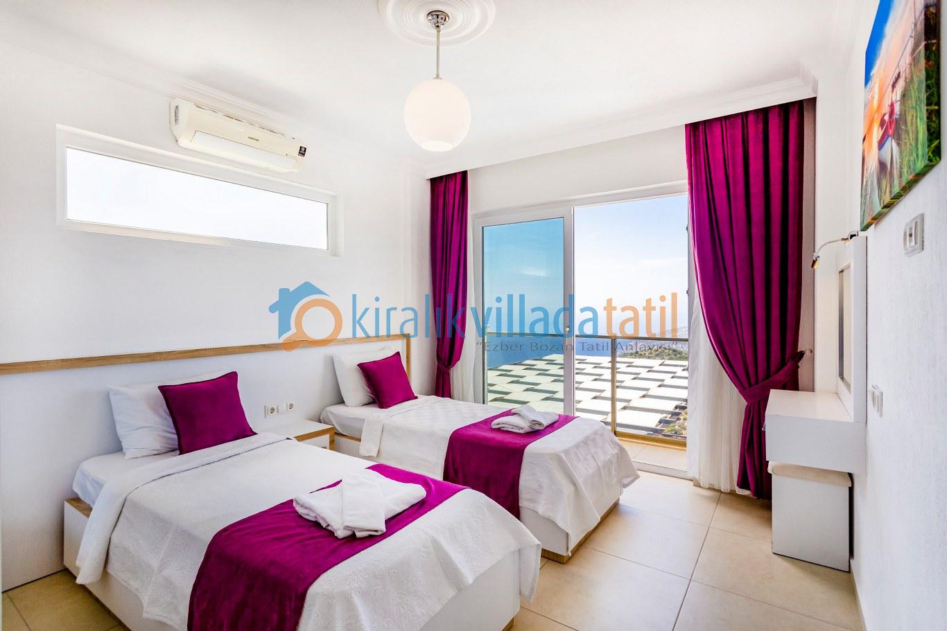 İki adet tek kişilik yatak, elbise dolabı, komodin, makyaj masası, klima, banyo ve balkon bulunmaktadır.