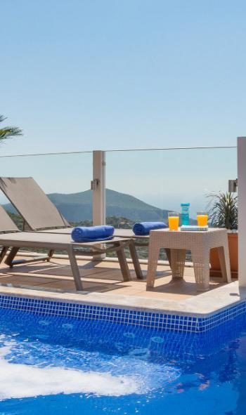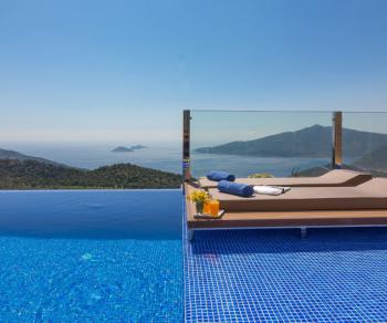 Villamız çok özenle dekore edilmiştir ve Kalkan koyu, Yılan ve Sıçan adaları manzarasına sahiptir. Yerden tavana kadar olan camları Villa’nın içerisinin ışıkla dolmasını ve muhteşem Kalkan manzarasının görülmesine olanak sağlar.