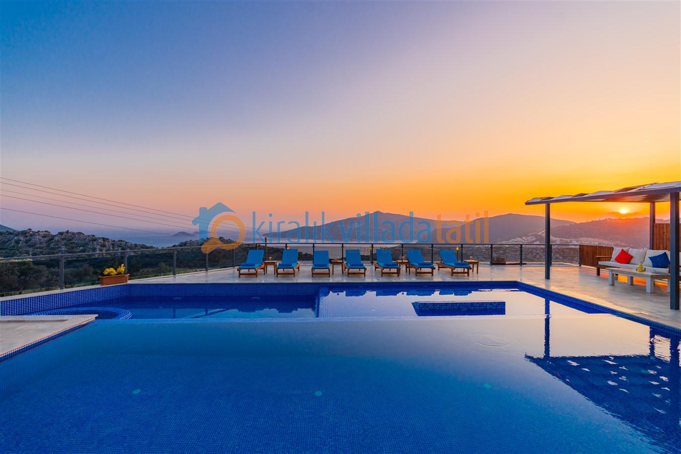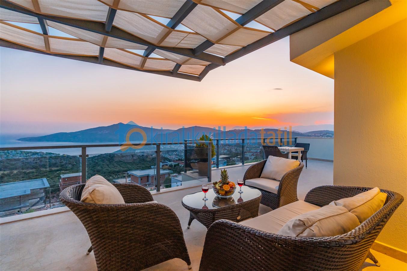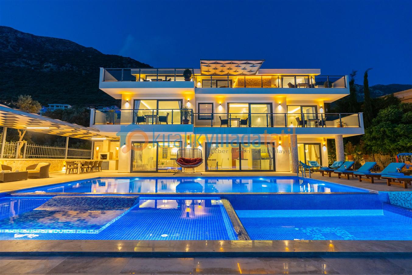 Kalkan Kördere Mevkiinde Deniz Manzaralı 12 Kişilik Lüks Tatil Villası
