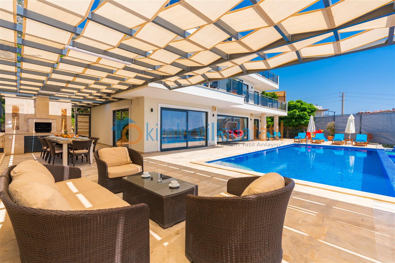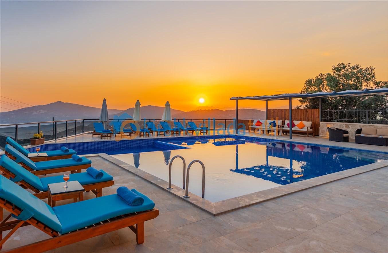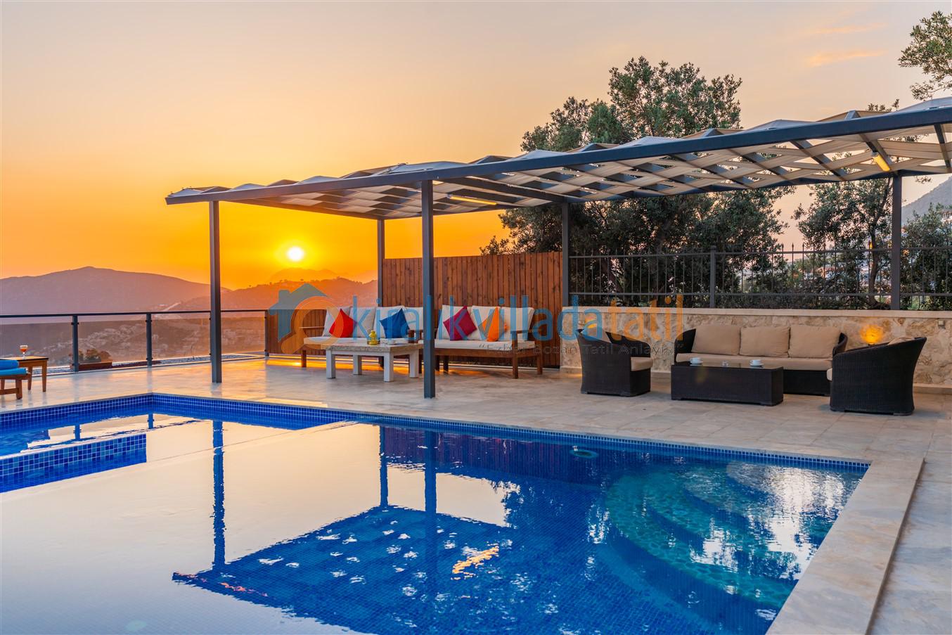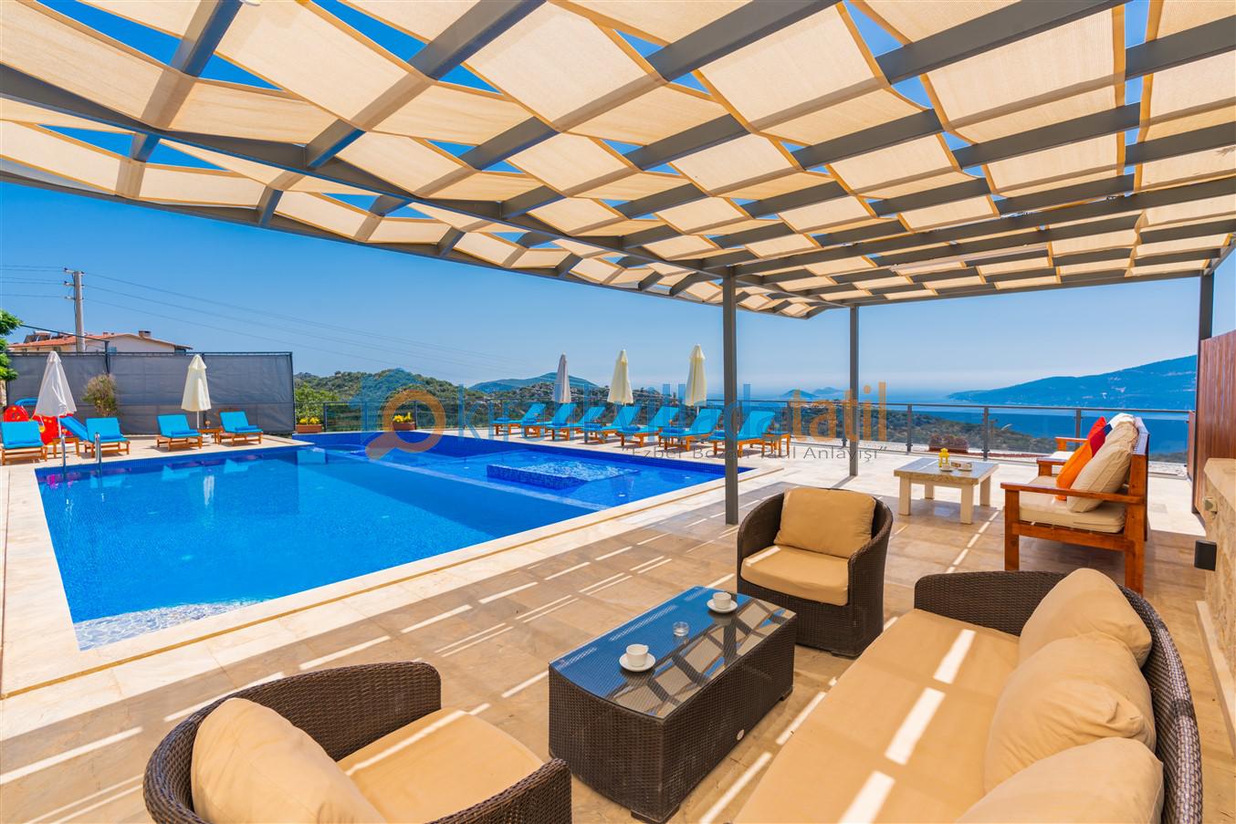 Kalkan Kördere Mevkiinde Deniz Manzaralı 12 Kişilik Lüks Tatil Villası
