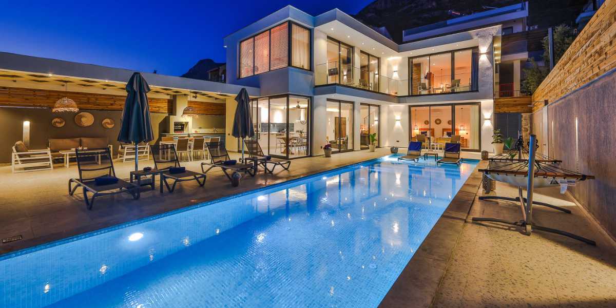 Kalkan Kördere’nin eşsiz deniz manzarası içerisinde konumlanan bu villa, lüks detayları ve geniş yaşam alanlarıyla unutulmaz bir villa kiralama deneyimi sunmaktadır. Deniz manzaralı bir kiralık villa tatili geçirmek isteyen misafirler için konforlu ve keyifli bir konaklama imkânı sunmaktadır.