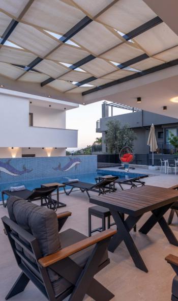 Yeni inşa edilmiş villamız, çağdaş mimarisi, ferah yaşam alanları ve konforlu iç tasarımıyla göz dolduruyor. 3 yatak odasıyla 6 kişilik kapasiteye sahip olan villa, modern mutfağı, geniş salonu ve özel havuzuyla rahat ve unutulmaz bir tatil için tasarlandı. Gün boyu güneşin tadını çıkarabilir, akşamları havuz başında sevdiklerinizle keyifli sohbetler edebilirsiniz.
