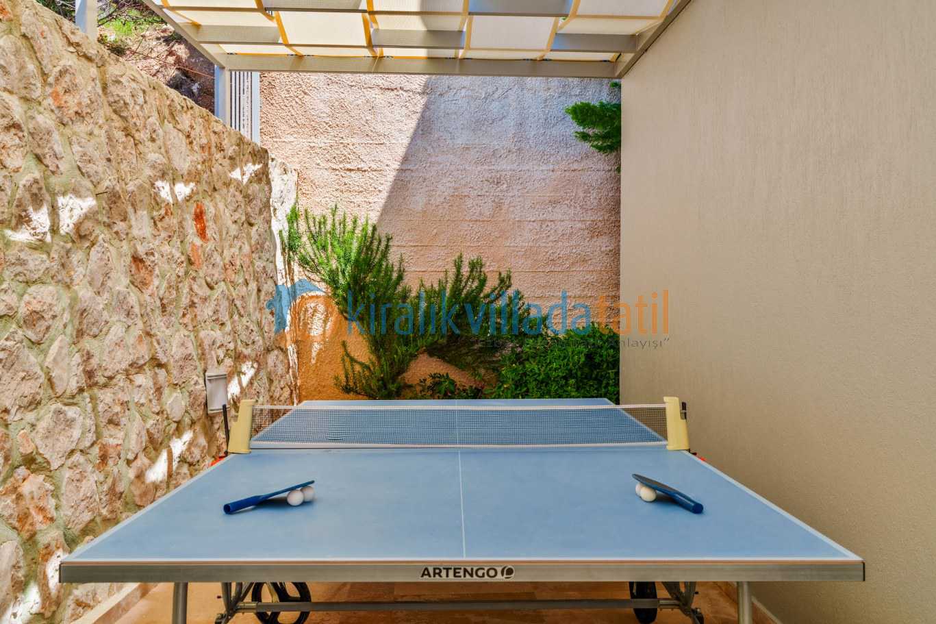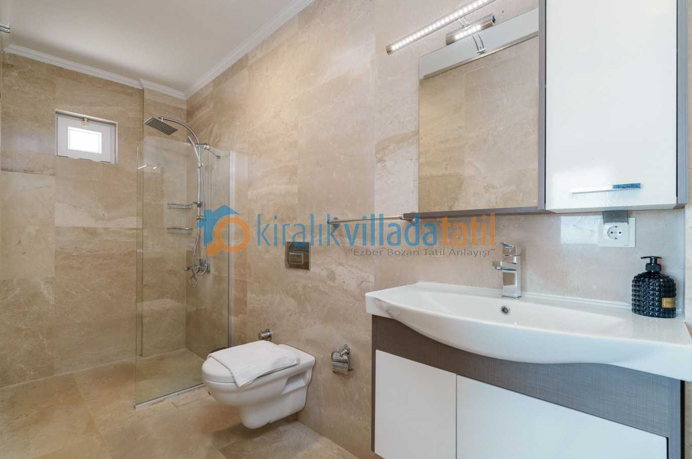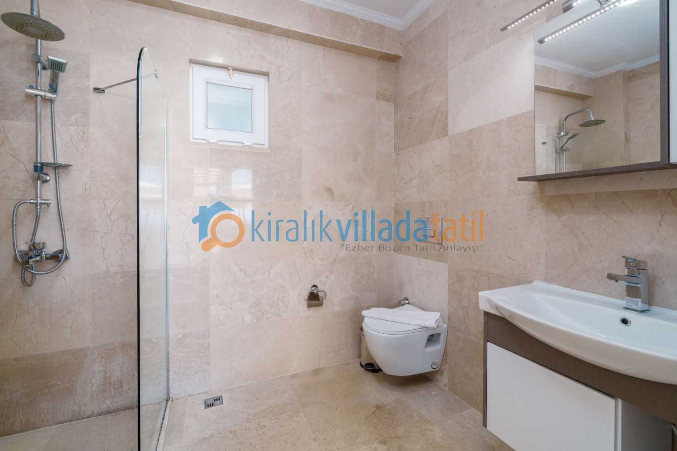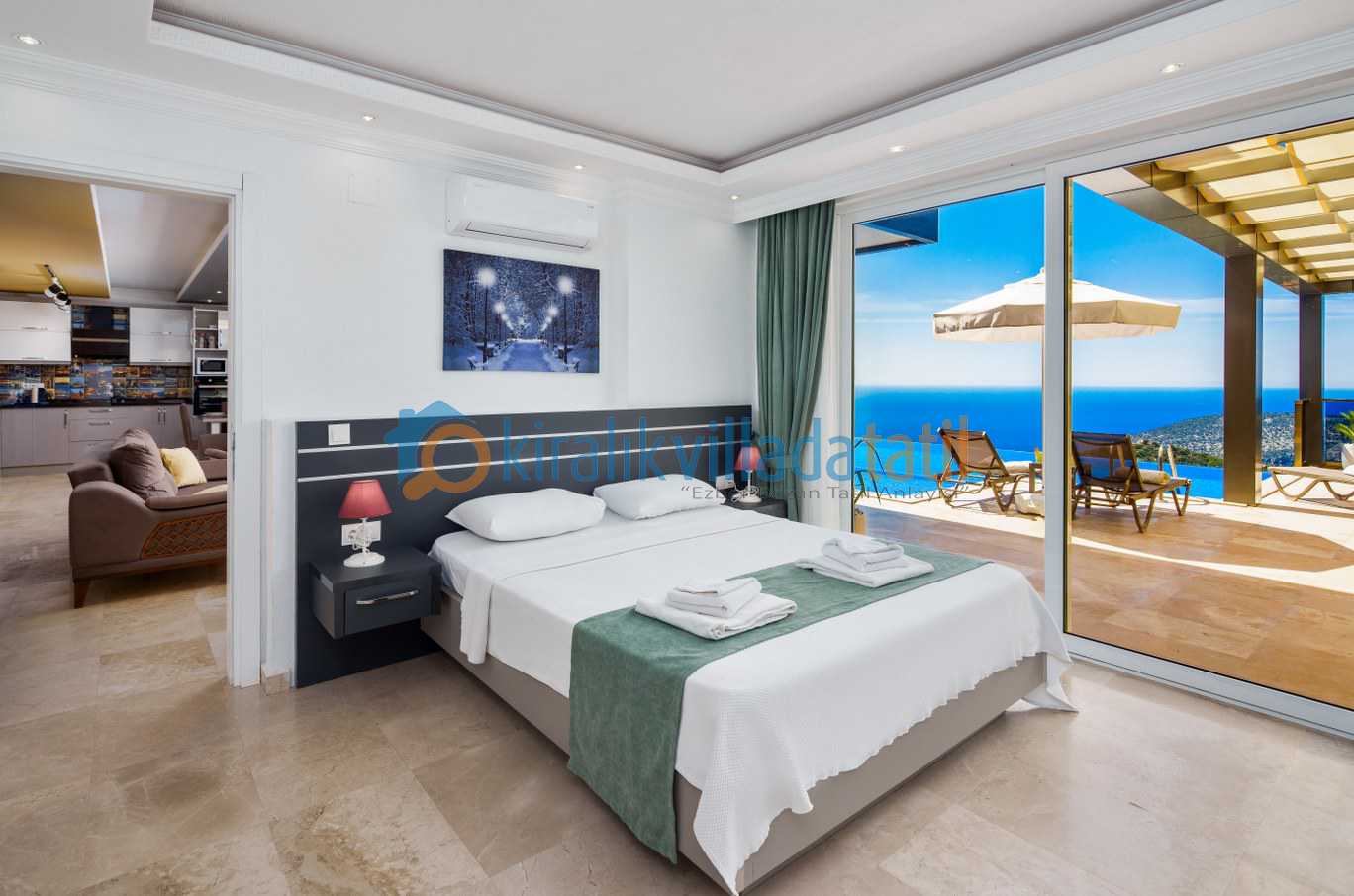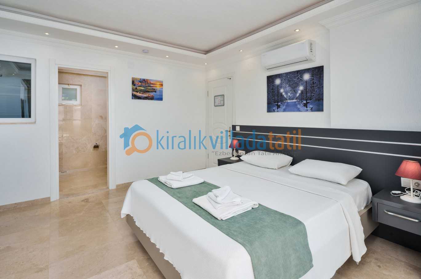 Deniz manzarası ile birleşen geniş teras alanı akşam saatlerinde çok daha etkileyici bir atmosfere dönüşür. Gün batımını izlemek açık havada vakit geçirmek ve sakin bir akşam geçirmek isteyenler için oldukça keyifli bir alan oluşturur. Hem merkezi konumda olup hem de bu kadar özel bir manzara sunması bu lüks villa seçeneğini daha değerli hale getirir. Kalkan’ın canlı yapısına yakın olmak isteyen ama aynı zamanda daha özel bir tatil geçirmek isteyen misafirler için dengeli bir alternatif sunar.
