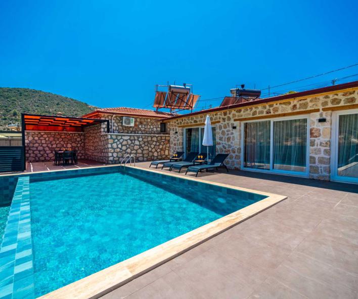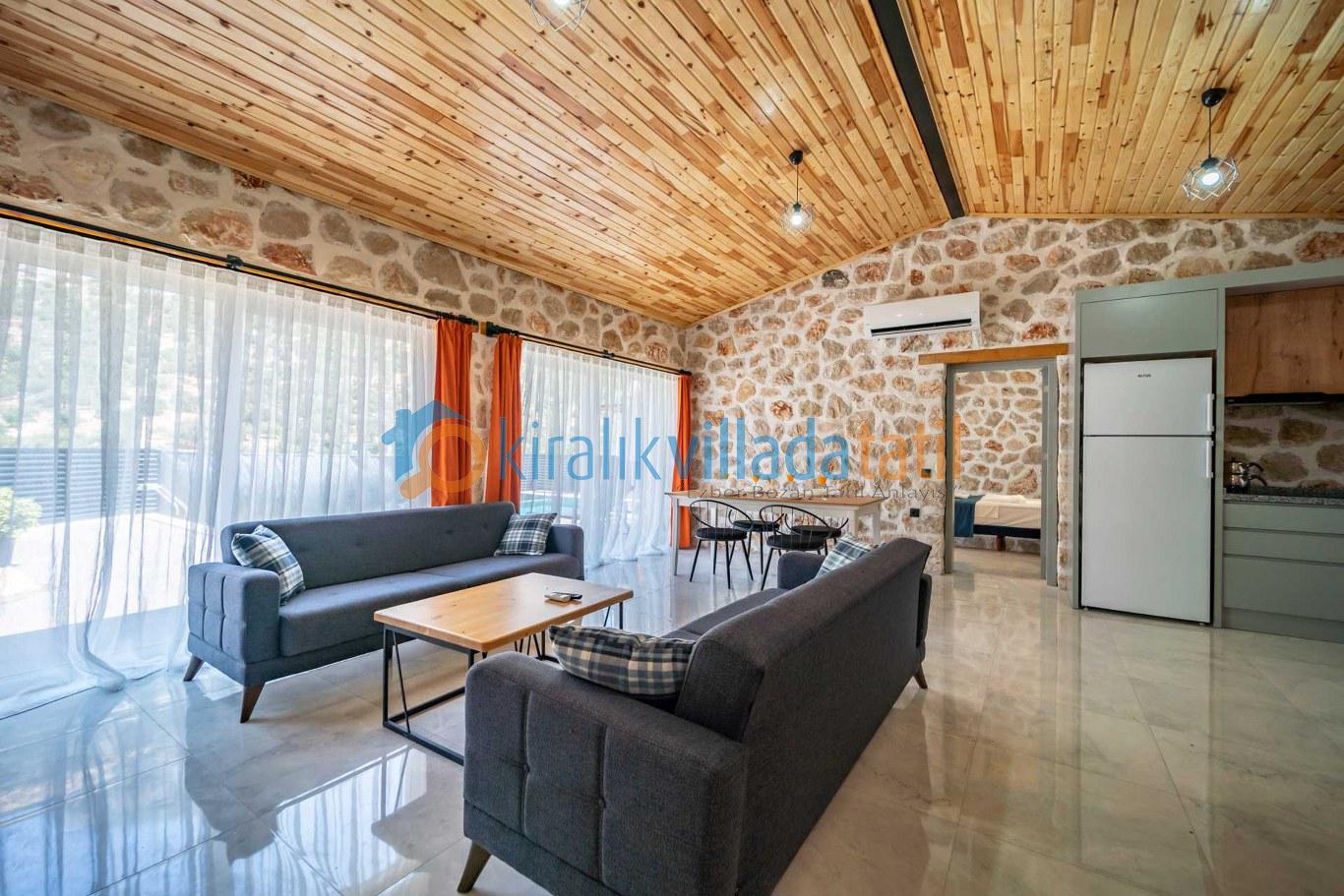 Kalkan Ordu Bölgesinde Taş Konsept 2 Yatak Odalı Villa