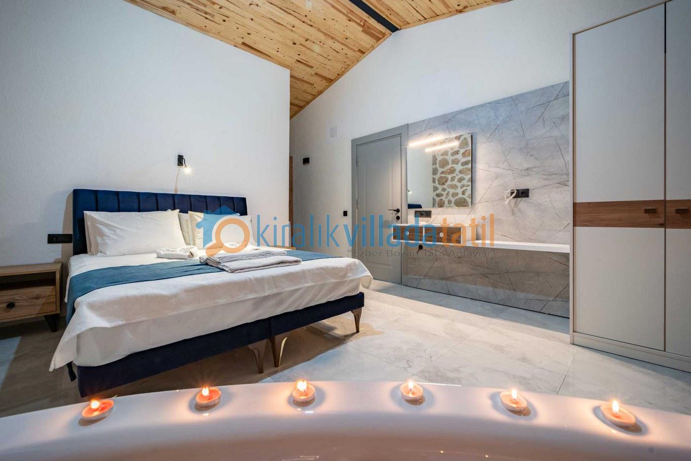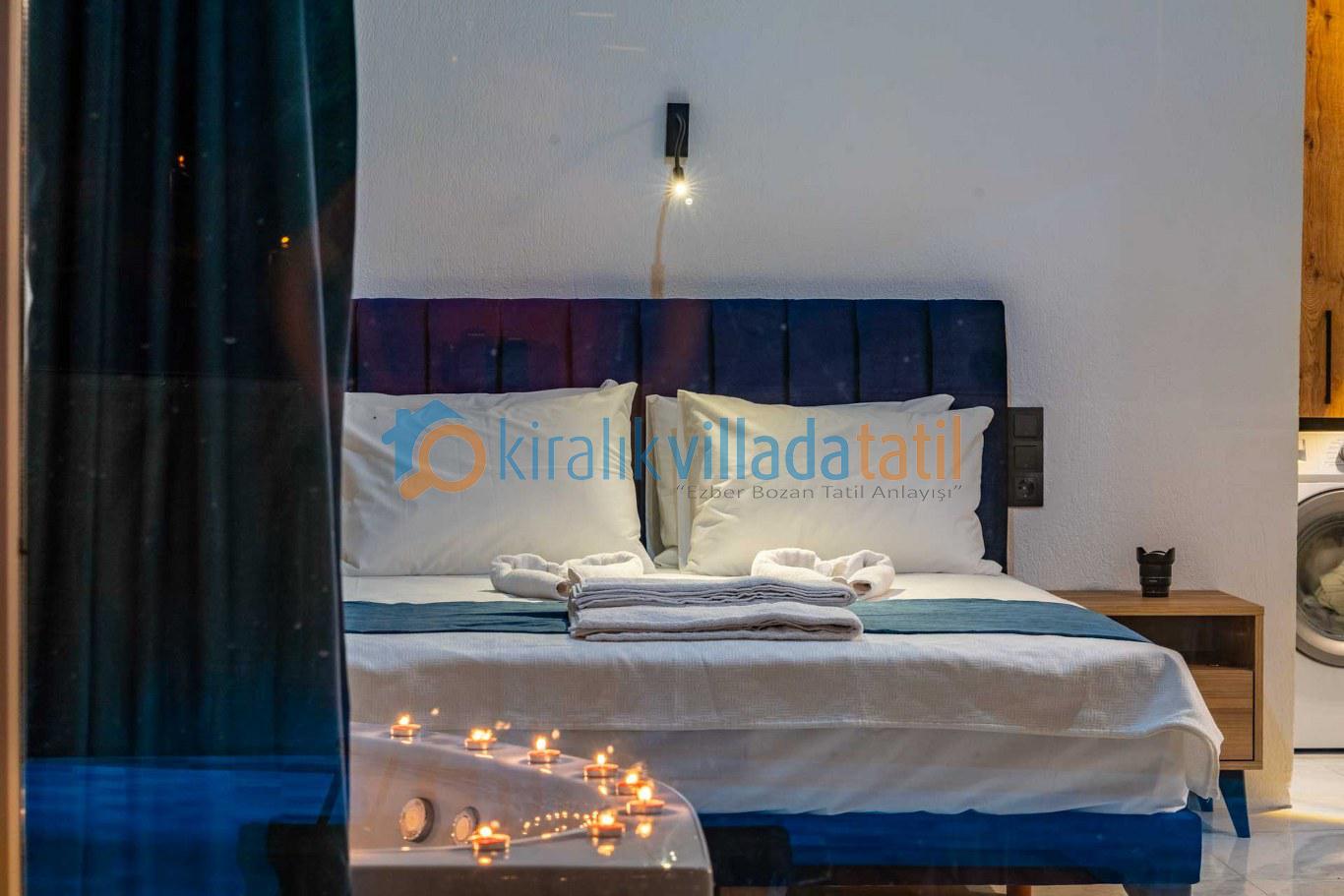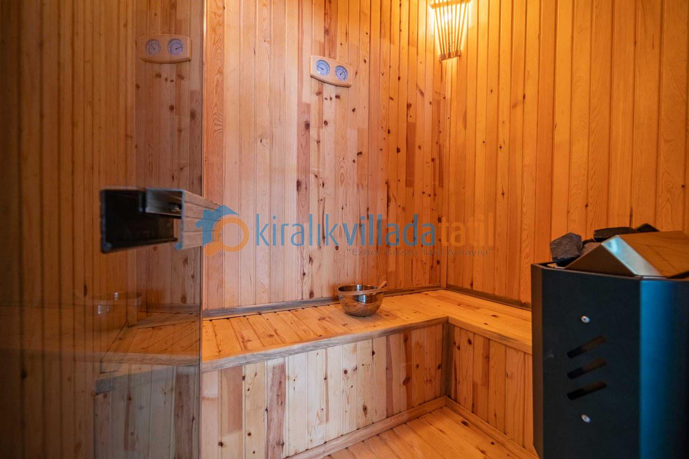 İç mekânda kullanılan kaliteli mobilyalar ve fonksiyonel yaşam alanları sayesinde tatil boyunca ev konforu korunur. Ebeveyn yatak odasında yer alan jakuzi, özellikle romantik kaçamaklar ve balayı tatilleri için ayrıcalıklı bir atmosfer oluştururken; villada bulunan özel sauna alanı, günün yorgunluğunu atmak isteyen misafirler için spa konforunda bir rahatlama imkânı sunar.