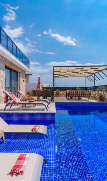 Villamızın her detayı, misafirlerimizin konforu ve memnuniyeti düşünülerek titizlikle planlanmıştır. Şık dekorasyonu ve modern olanaklarıyla misafirlerine rahat ve lüks bir konaklama imkanı sunmaktadır. Deniz manzarasıyla huzur dolu anlar yaşayabileceğiniz bu villada, geniş terasında güneşin tadını çıkarabilir, özel havuzunda serinleyebilirsiniz.