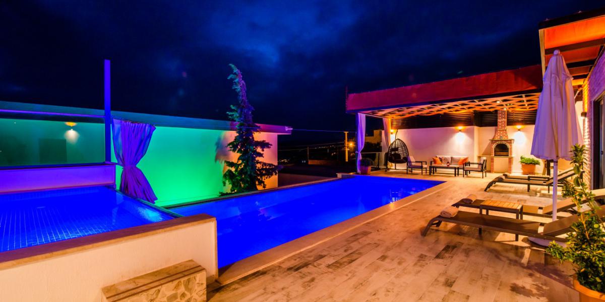 Villamızda keyifli vakit geçirmeniz için masa tenisi ve langırt alanı bulunmakta olup, ana yatak odasında yer alan jakuzi tatilinize ekstra konfor katmaktadır. Özel yüzme havuzu tamamen korunaklıdır ve isteğe bağlı olarak ek ücret karşılığında ısıtılabilmektedir.
