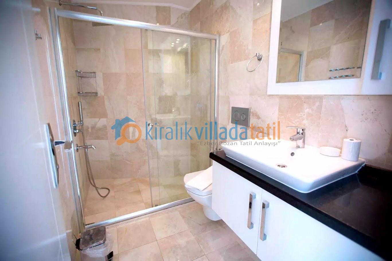 Tam donanımlı mutfak ve geniş salon alanı, kalabalık grupların bir arada vakit geçirebilmesi için fonksiyonel şekilde planlanmıştır. Hem şehir merkezine yakın olmak isteyen hem de özel alanında konforlu bir tatil hedefleyen misafirler için bu villa, kiralık villa seçenekleri arasında güçlü bir alternatiftir.