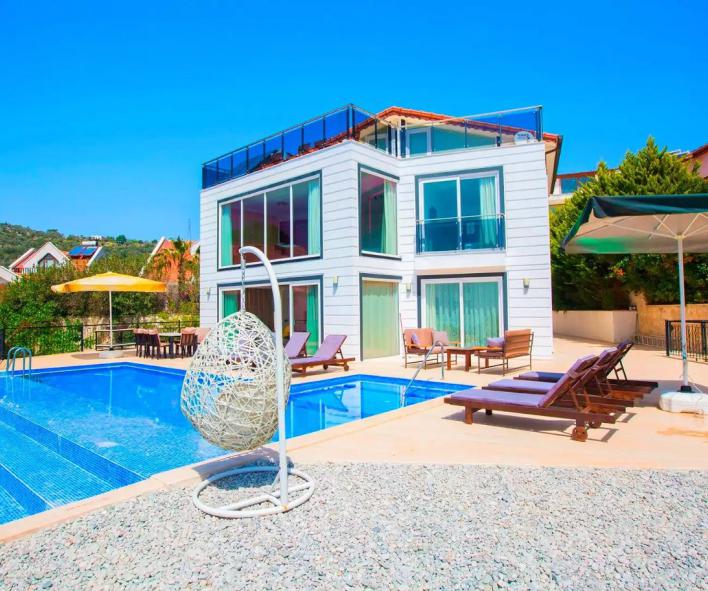 Kalkan’ın merkezine yakın, deniz manzaralı ve geniş kapasiteye sahip bu özel villa; rahatlık, ulaşım kolaylığı ve manzara beklentisini aynı anda karşılamak isteyenler için ideal bir villa kiralama tercihidir.