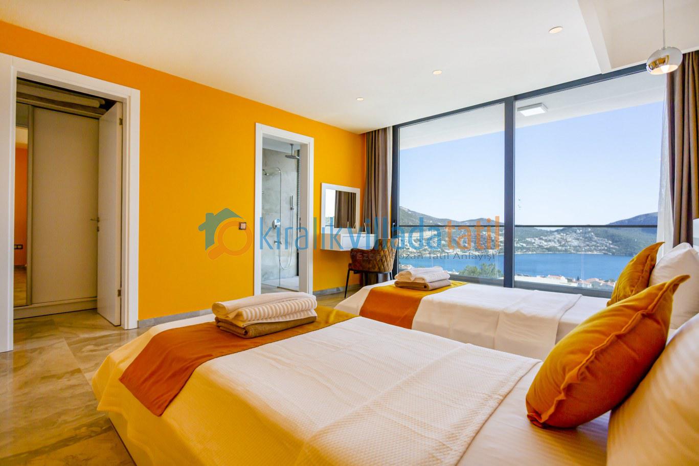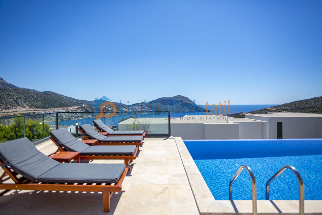 Kalkan Ortaalan Mevkiinde Deniz Manzaralı 10 Kişilik Tatil Villası