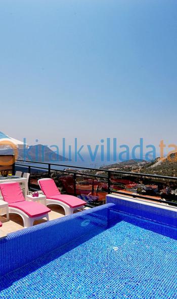 Bu ilan ait Detaylı açıklama ve bilinmesi gereken detaylarKalkanın üst bölgesinde bulunan villamız 2 suit yatak odası ile 4 kişi kapasiteye sahiptir. Kalkanın üst bölgesine konumlandırılan villamız Akdeniz ve kalkan koyunun muhteşem bir panaromik manzarasına sahiptir. Villamızın havuzu çatı kısmında bulunmaktadır havuz etrafı perde sistemi ile kapatılarak gözden uzakta tatil yapmak isteyen ailelerimize ve balayı çiftlerimiz hitap eden villalarımızdan birisidir.