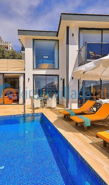 NOT: Villanın ön tarafında bulunan arsaya yeni yapılan villalardan dolayı, havuz terasındaki deniz manzarası kısıtlanmıştır. Yatak odasından deniz manzarası hâlâ açıktır.
