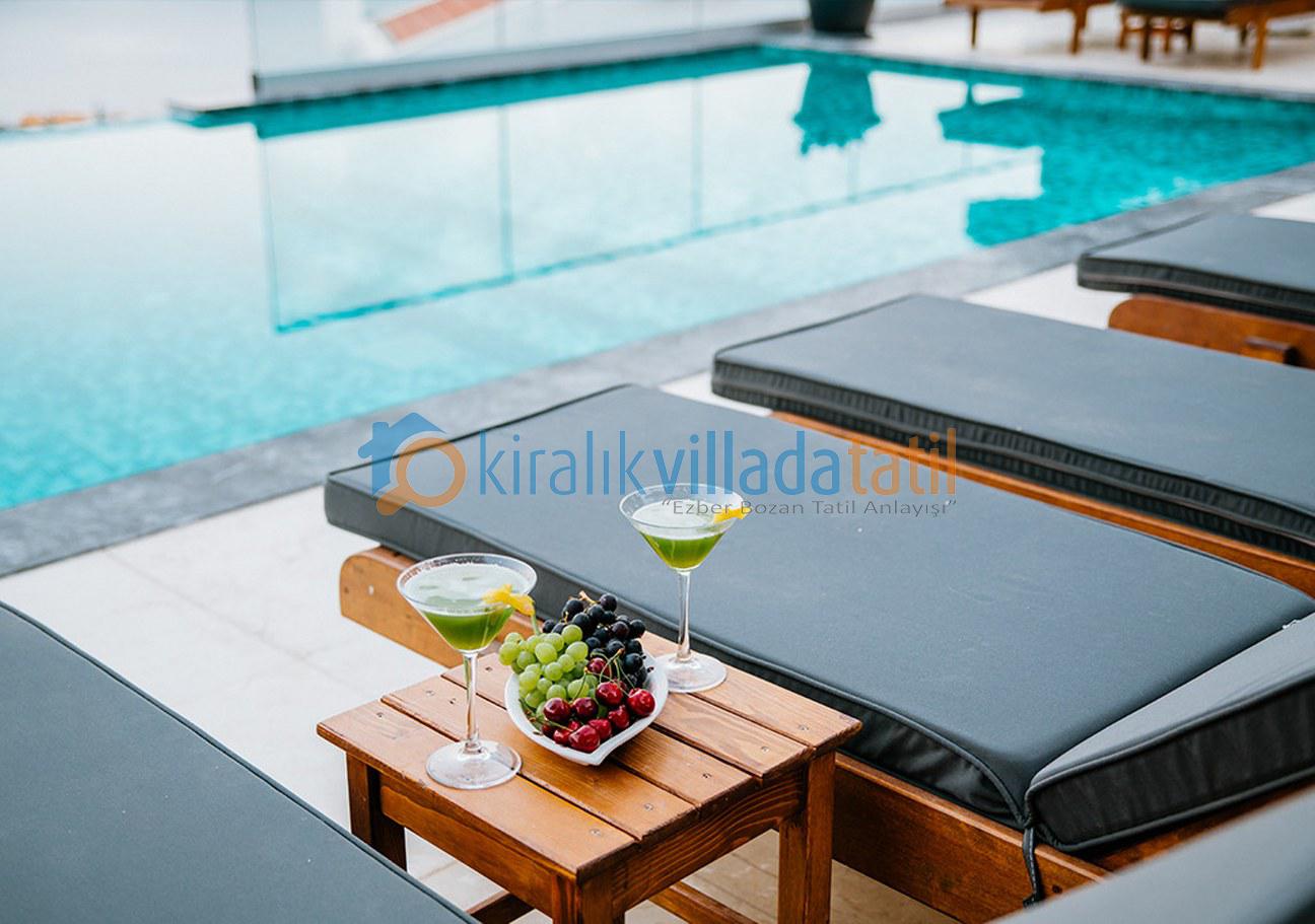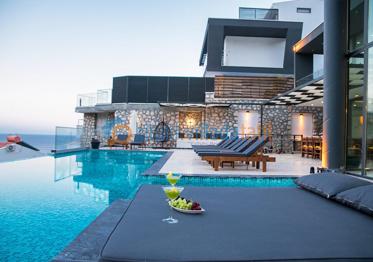 Geniş havuz ve havuz terası ile keyifli bir tatil sunan villamızda tatilinizi unutulmaz bir an yapmak için her şey en ince detayına kadar düşünülmüştür. Geniş salon geniş mutfak ve odaları ile rahat hareket edebileceğiniz villamızda her sabah sizleri Akdenizin incisi kalkan koyu panaromik bir manzara ile karşılayacak.