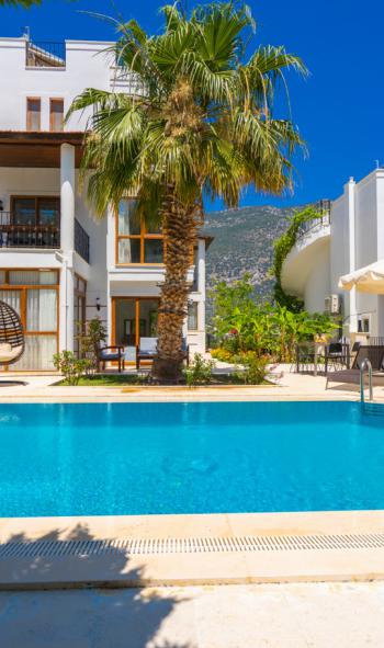 Antalya–Fethiye yolu üzerinde kolayca ulaşabileceğiniz Kalkan, Türkiye’nin en özel tatil yerlerinden biridir. Göz alıcı doğası ve sakin atmosferiyle her zevke hitap eden bir tatil beldesidir. Bölgede yer alan kiralık villalar, muhafazakâr konseptte korunaklı villalar, balayı çiftlerine özel romantik balayı villalar, deniz ve doğa manzaralı seçeneklerle her misafirin beklentisini karşılamaktadır. İster uygun fiyatlı ekonomik kiralık villalar arayın, ister ultra lüks villa seçenekler, Kalkan’da dilediğiniz konaklama alternatifini bulabilirsiniz. Doğayla baş başa kalmak isteyen misafirler için yeşillikler içinde konumlanan doğa villaları harika bir tercih olacaktır. Bölgede kiralık apart ve kiralık villalar oldukça popülerdir. Artan otel fiyatlarıyla birlikte tatilciler artık daha özgür ve konforlu bir tatil deneyimi için kiralık villaları tercih etmektedir.