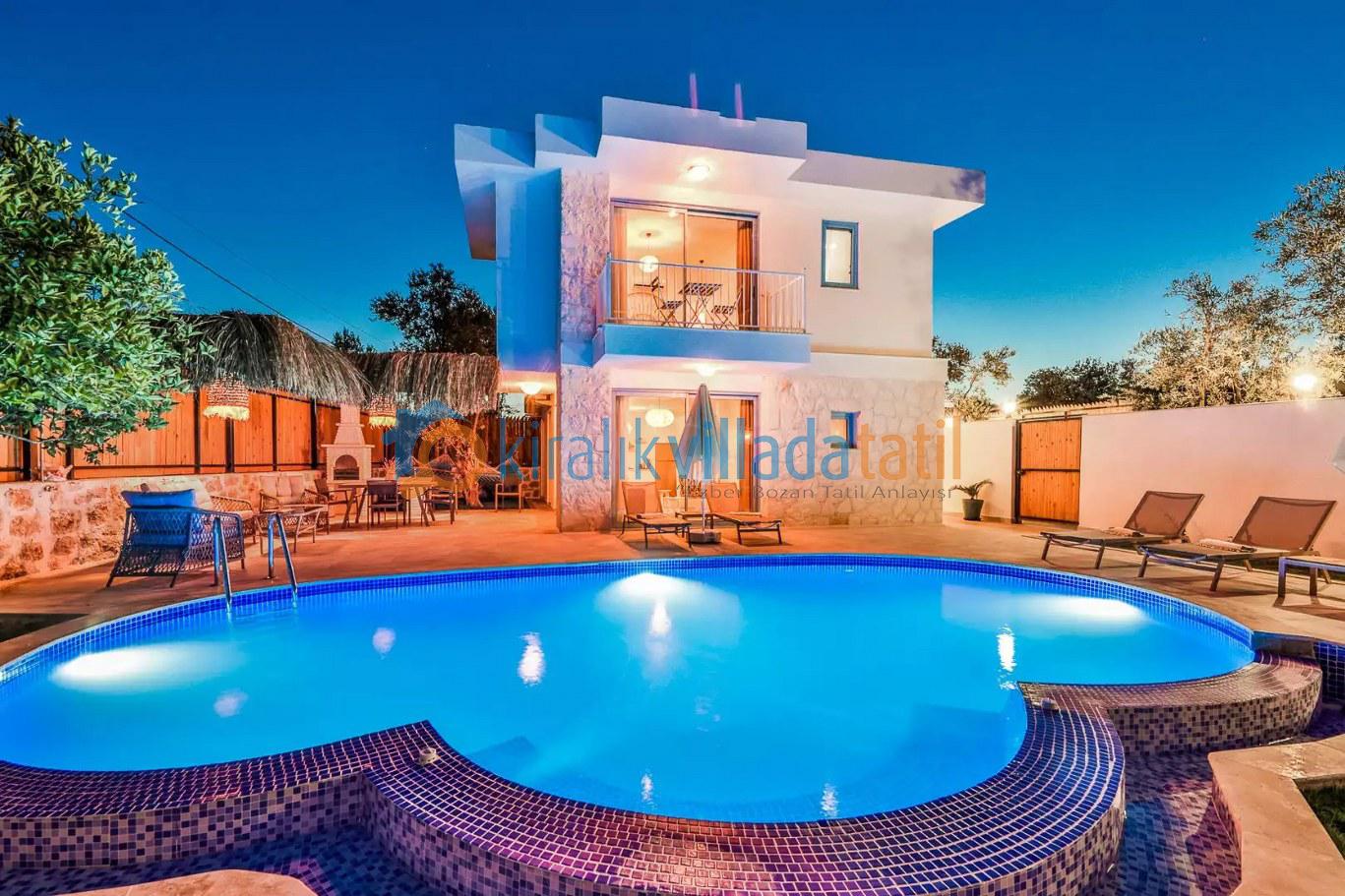 Kiralık Villada Tatil’in seçkin portföyünde yer alan bu özel villa, Kalkan’ın en çok tercih edilen bölgelerinden Patara’da, modern mimarisi ve doğayla bütünleşen konumuyla öne çıkıyor. Hem balayı çiftlerinin romantik ve huzurlu bir başlangıç yapabilmesi hem de çekirdek ailelerin güvenli ve konforlu bir tatil yaşayabilmesi için özenle tasarlanmıştır.