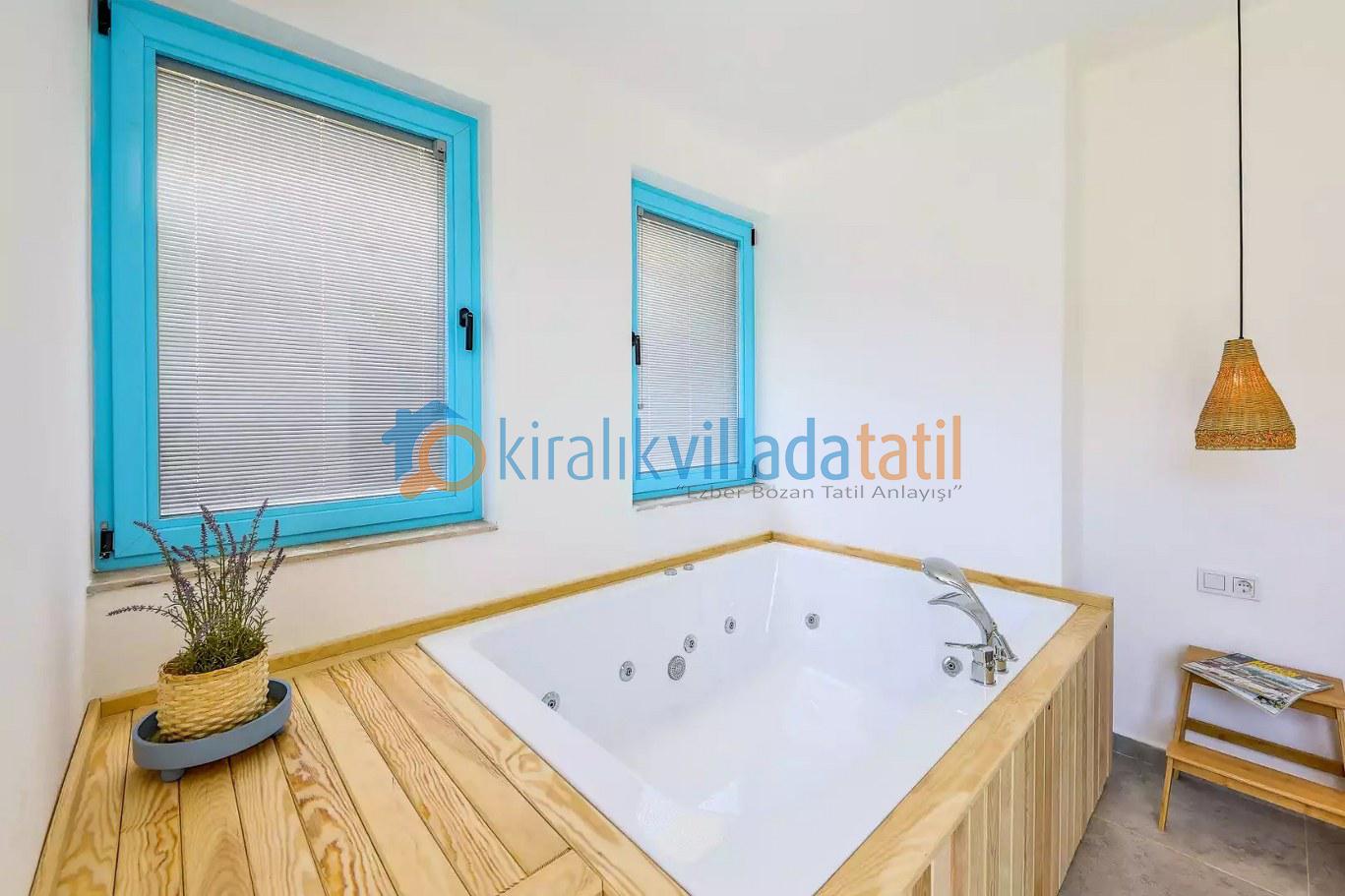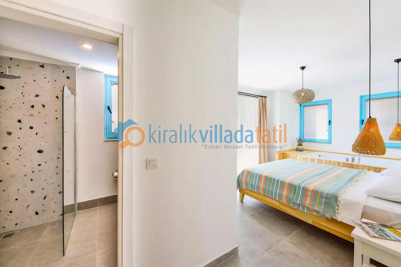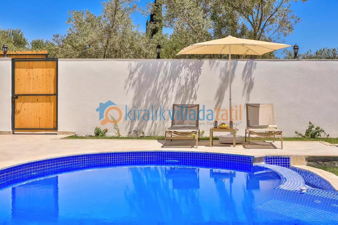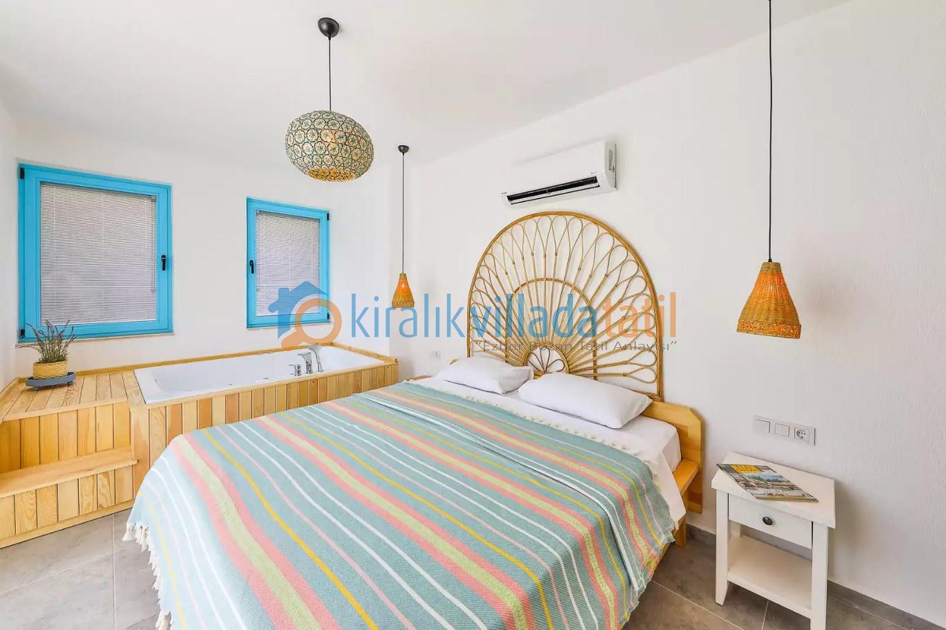 Toplam 2 yatak odasına sahip olan villamız, 4 kişilik konaklama kapasitesiyle kompakt ama oldukça fonksiyonel bir yaşam alanı sunar. Ana yatak odasındaki özel jakuzi, misafirlere günün yorgunluğunu atabilecekleri keyifli bir alan yaratırken; tamamen korunaklı yüzme havuzu ise misafirlere dışarıdan görünmeden rahatça vakit geçirme imkanı sağlar. Bu özellik, özellikle mahremiyete önem veren aileler ve korunaklı villa arayan misafirler için önemli bir avantajdır.
