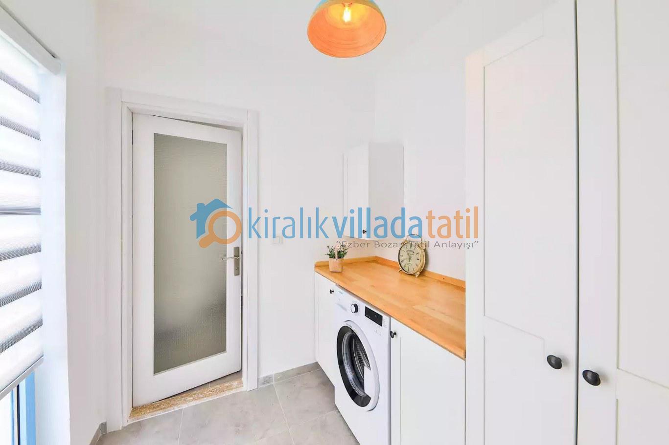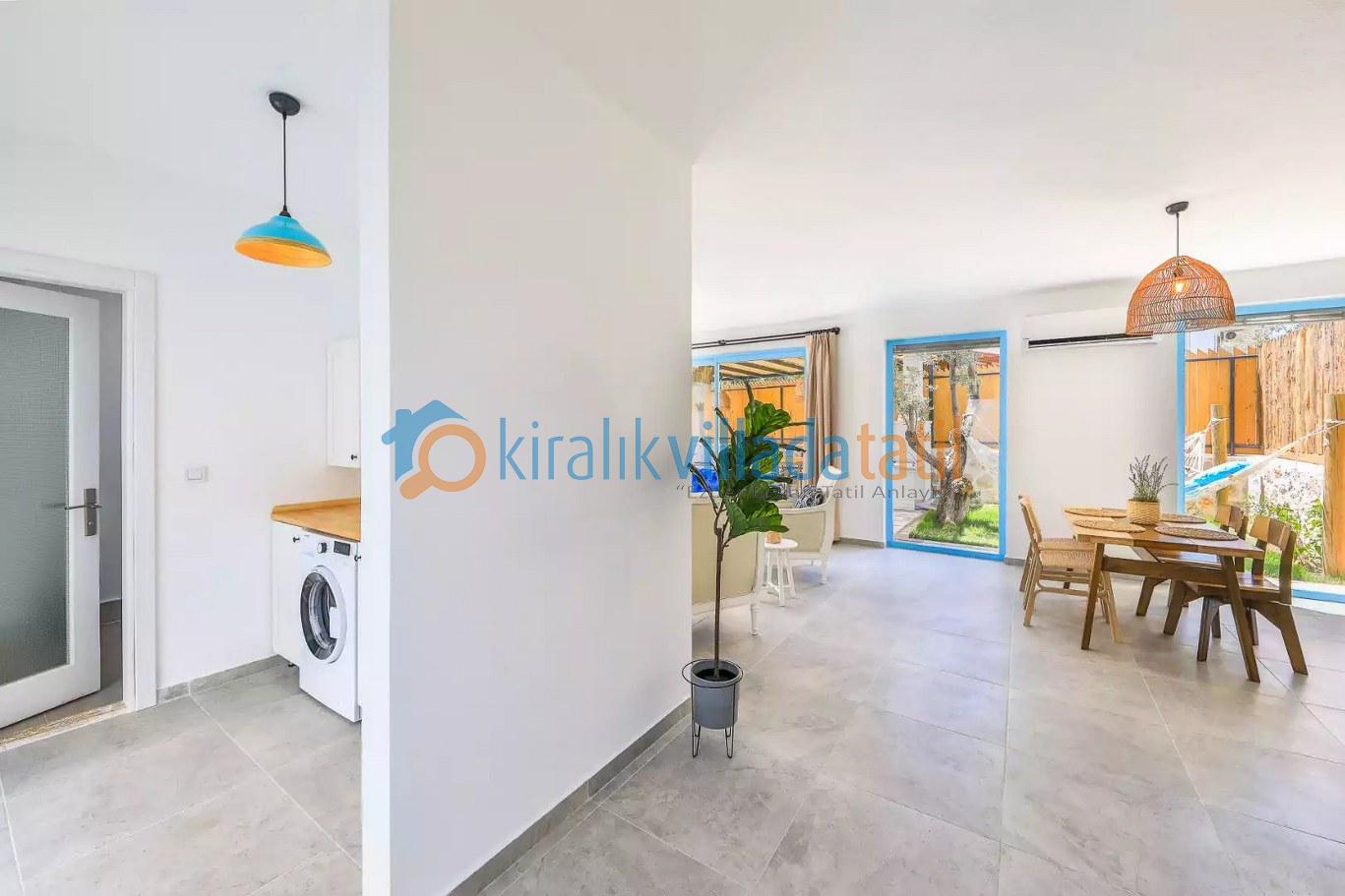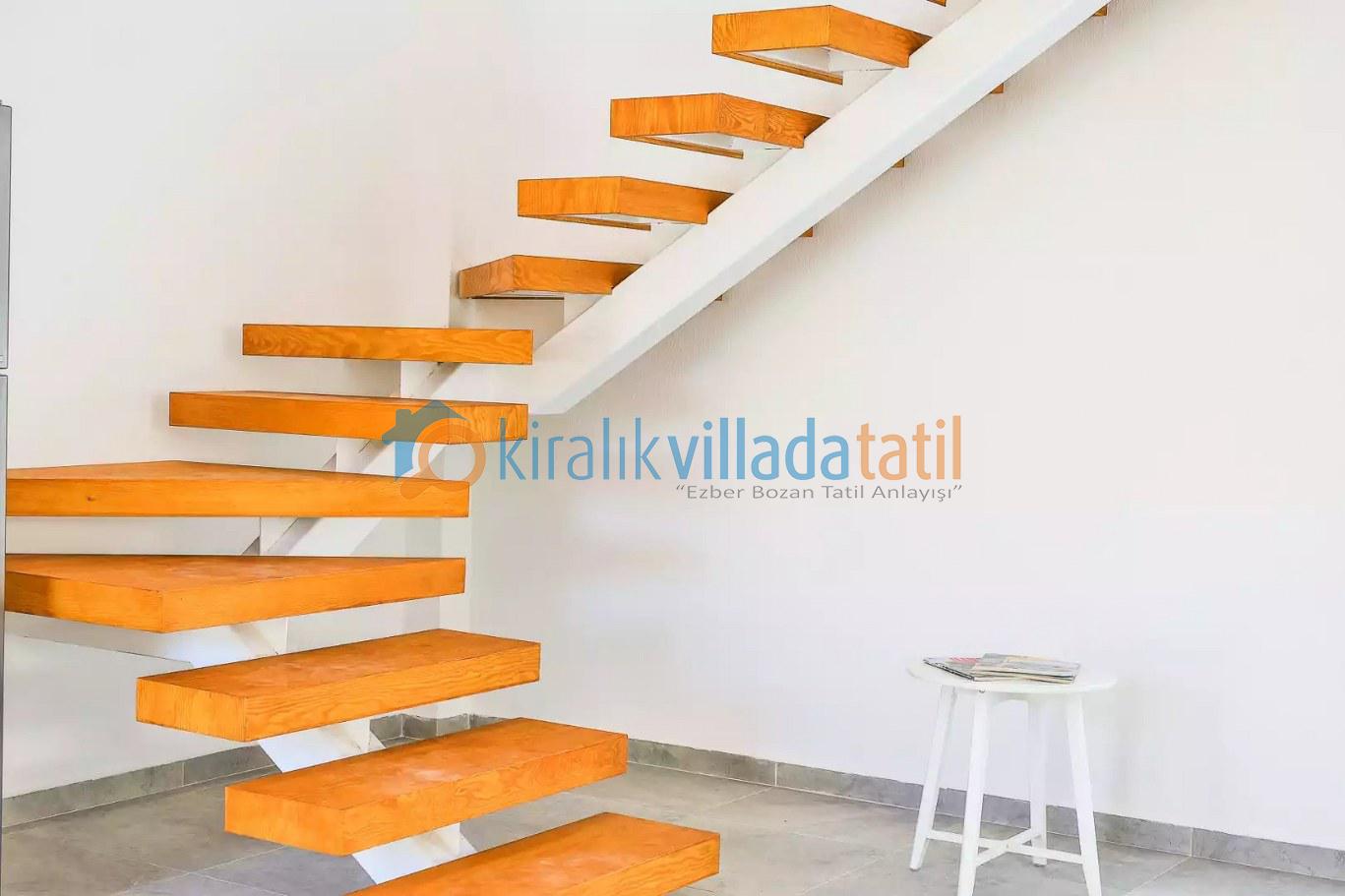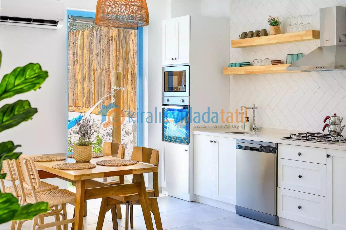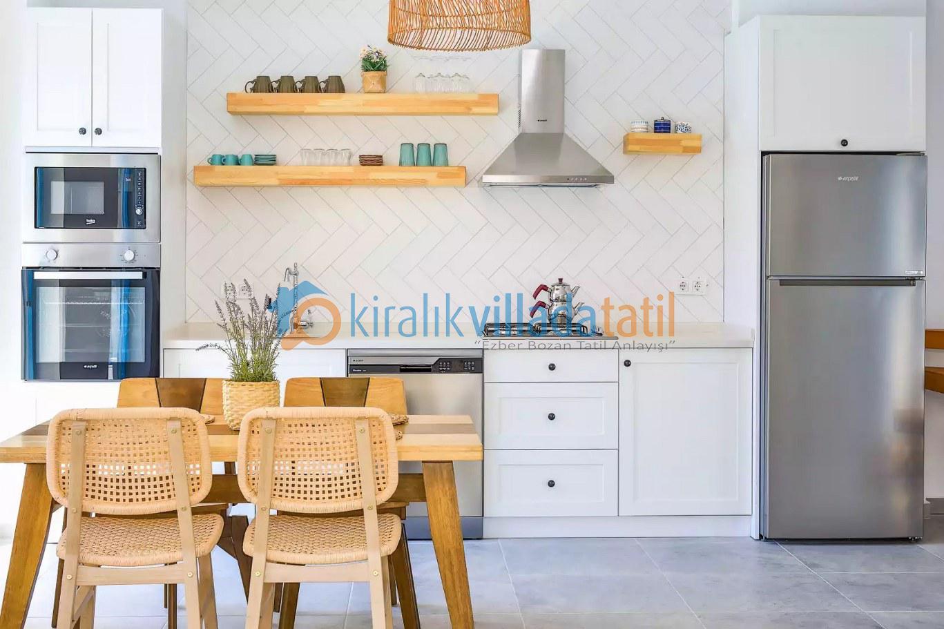 Villanın modern iç dekorasyonu, şık mobilyaları ve sıcak atmosferi, tatil boyunca ev konforunu yaşamak isteyen misafirler için ideal bir ortam hazırlar. Ferah salon, tam donanımlı mutfak ve geniş havuz terası ile villa, lüks villa kategorisinde beklentileri karşılayan bir tatil deneyimi sunar.
