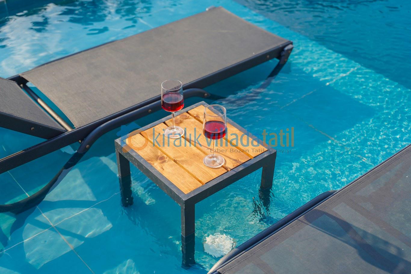 Villanın havuz ve havuz terası tamamen dışarıdan görünmeyecek şekilde tasarlanmıştır. Bu özelliği sayesinde korunaklı villa konseptine sahip olup, gönül rahatlığıyla tatil yapmak isteyen misafirler için muhafazakar villa kategorisinde yer almaktadır. Özel kullanım sunan korunaklı havuzu, tatil süresince mahremiyetinden ödün vermek istemeyenler için önemli bir avantaj sağlar.